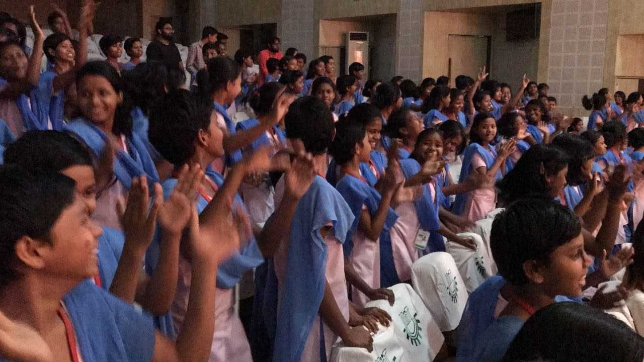 ↑初日、ブバネシュワルのKIITでのライブの時の模様。皆飛び跳ねて楽しんでいました。音楽は言葉を超える瞬間でした。