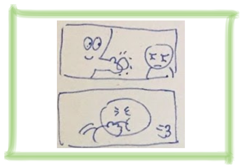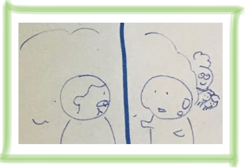 お友達にあやまる勇気が出て「あのね・・・」と話しかけるところで物語が終了です。