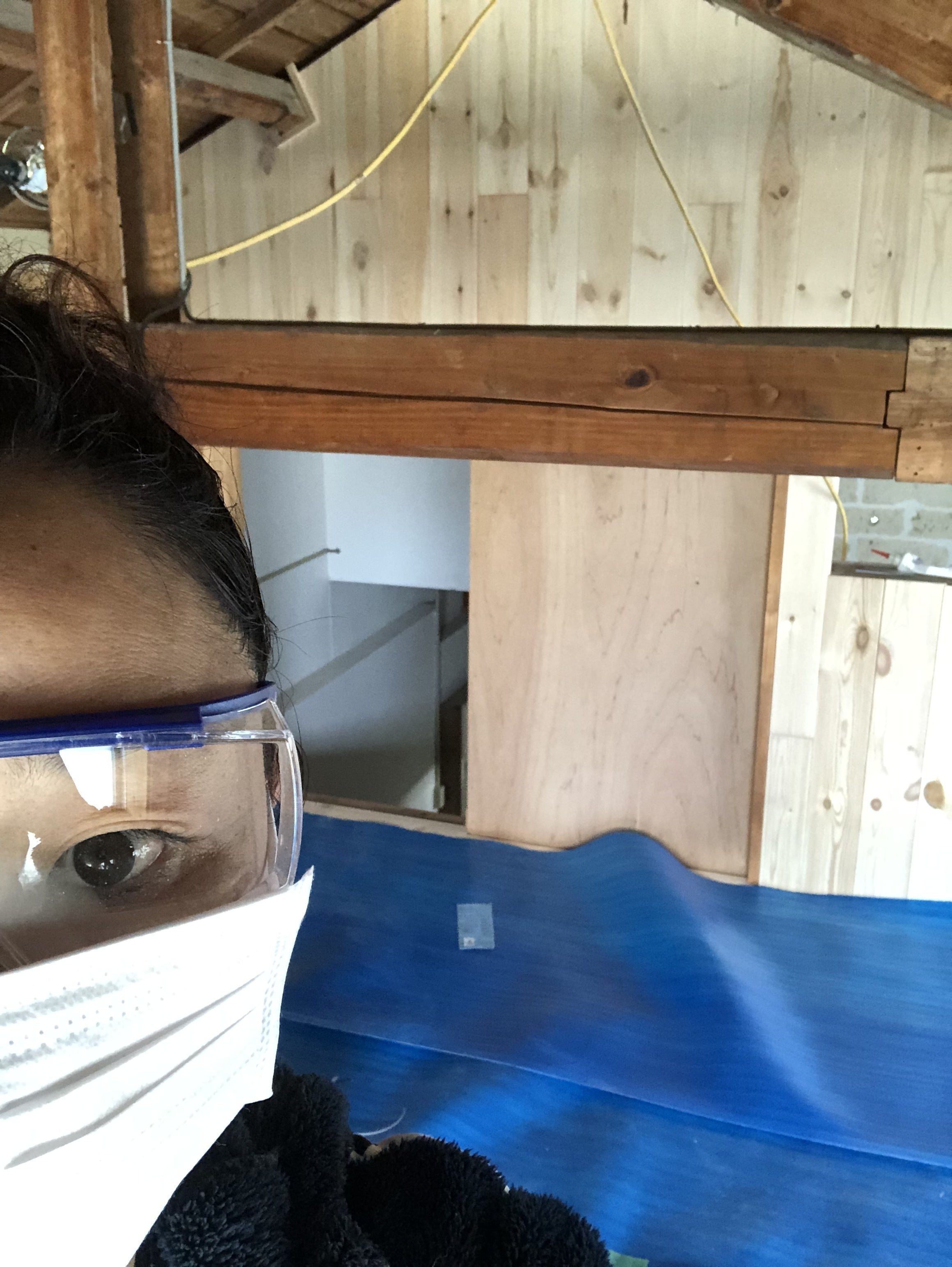 今日は「ハリ」の汚れ落とし。タオルで吹いてみたものの、雑巾があっという間に真っ黒。ならば完全防備でヤスリで磨こう!