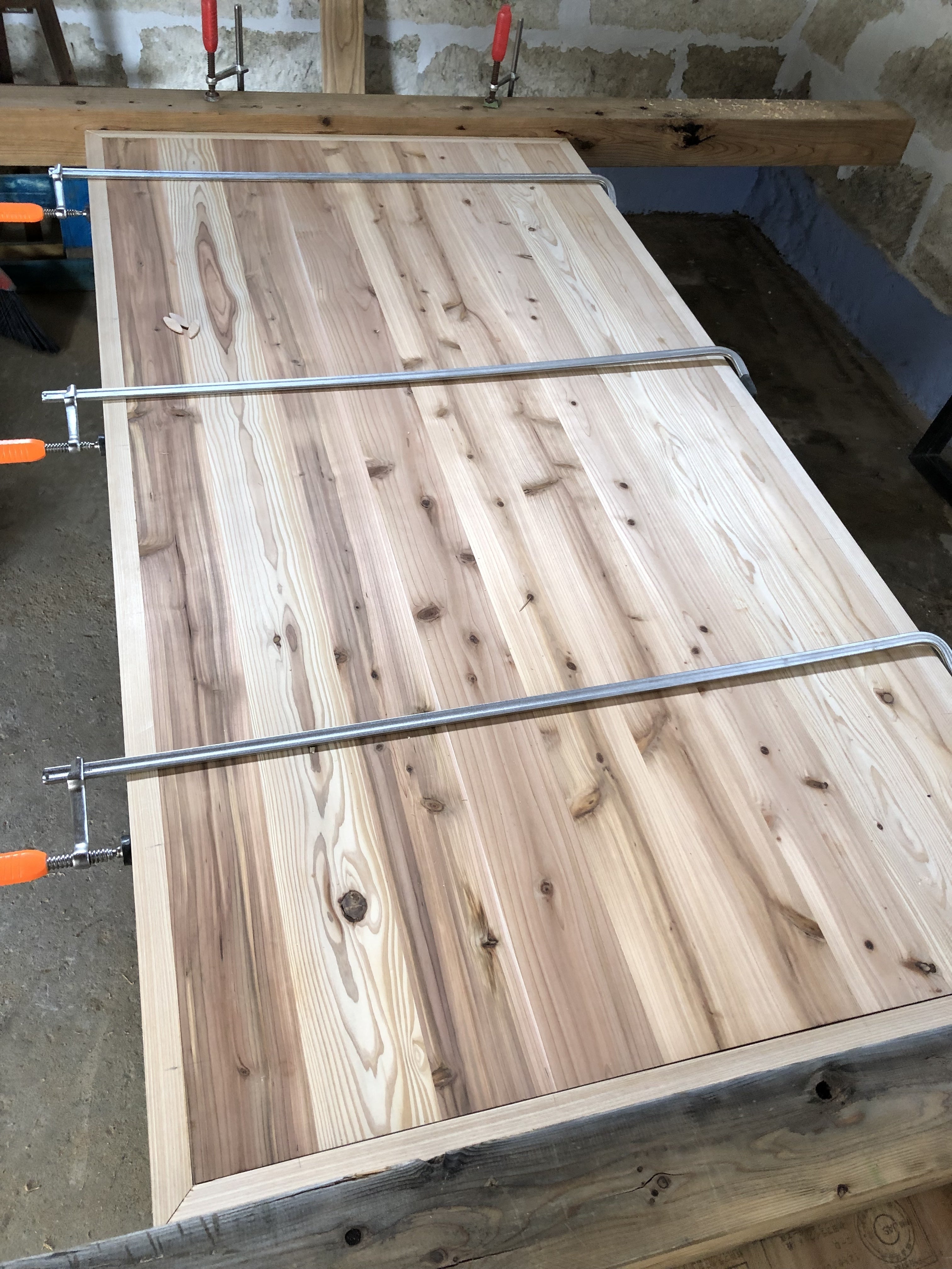 ただいま接着中! 週末はビンテージワックス塗っていい感じにします。