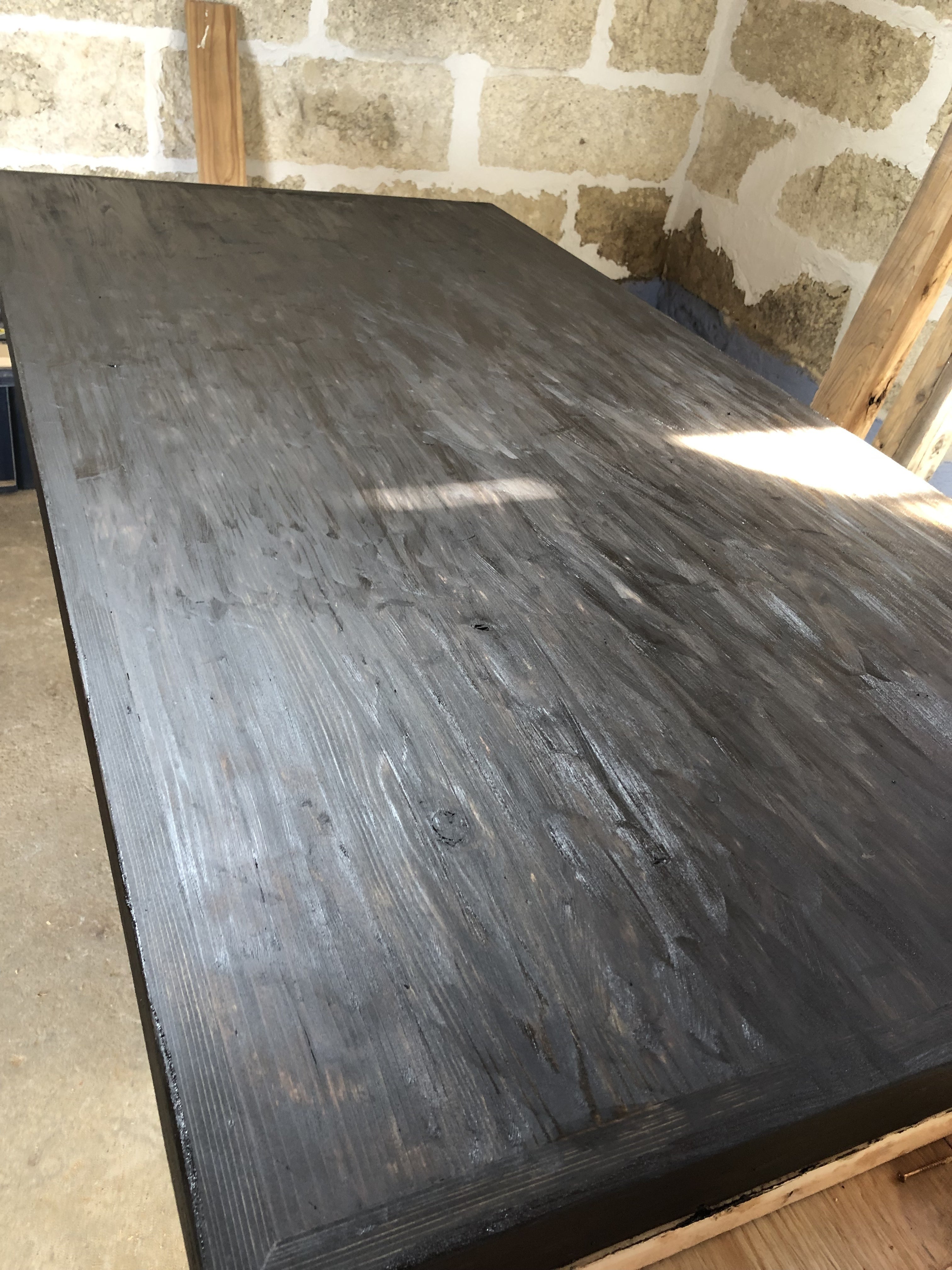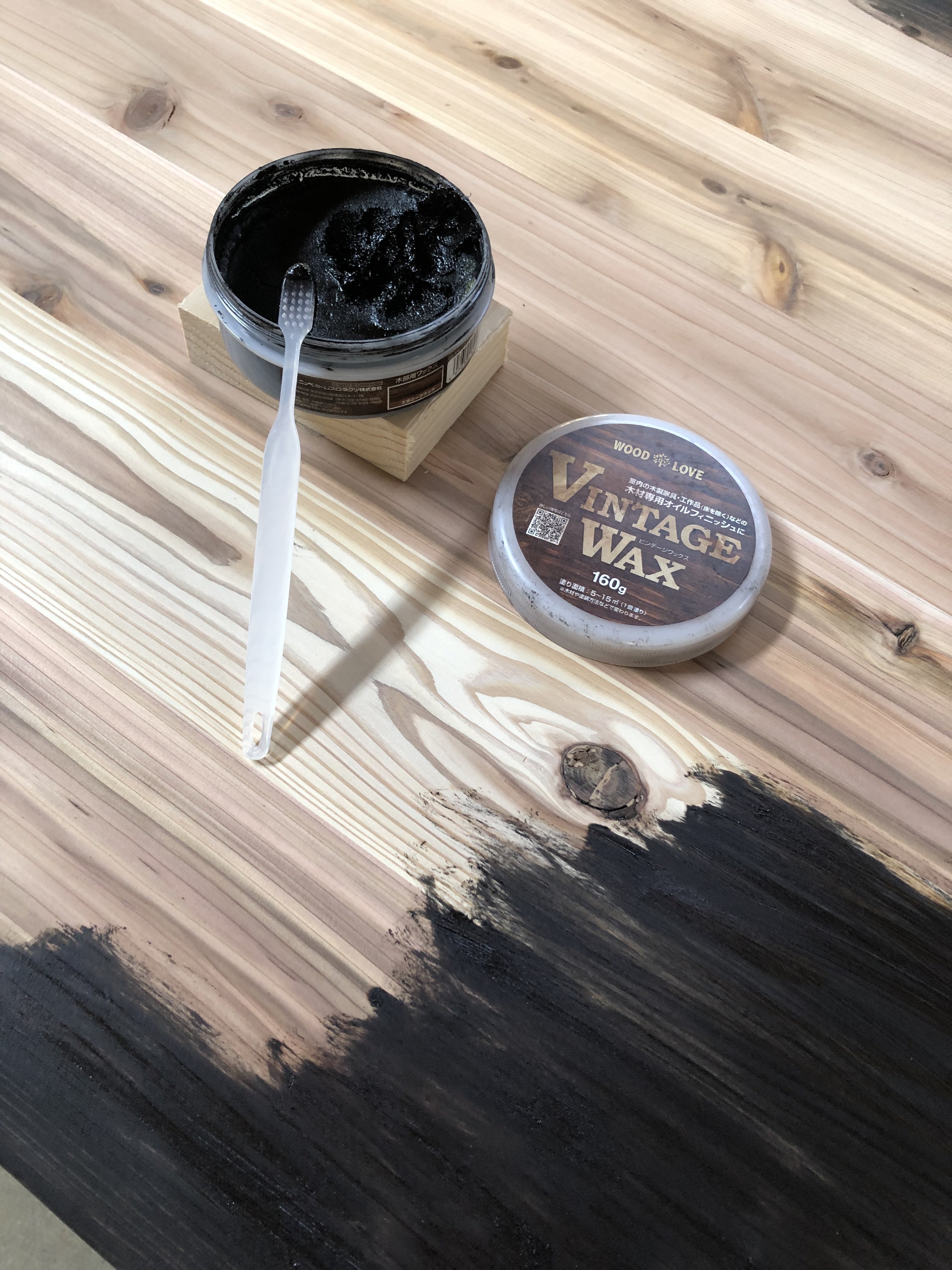 無事に接着完了したので、天板をビンテージワックスで仕上げることにしました。