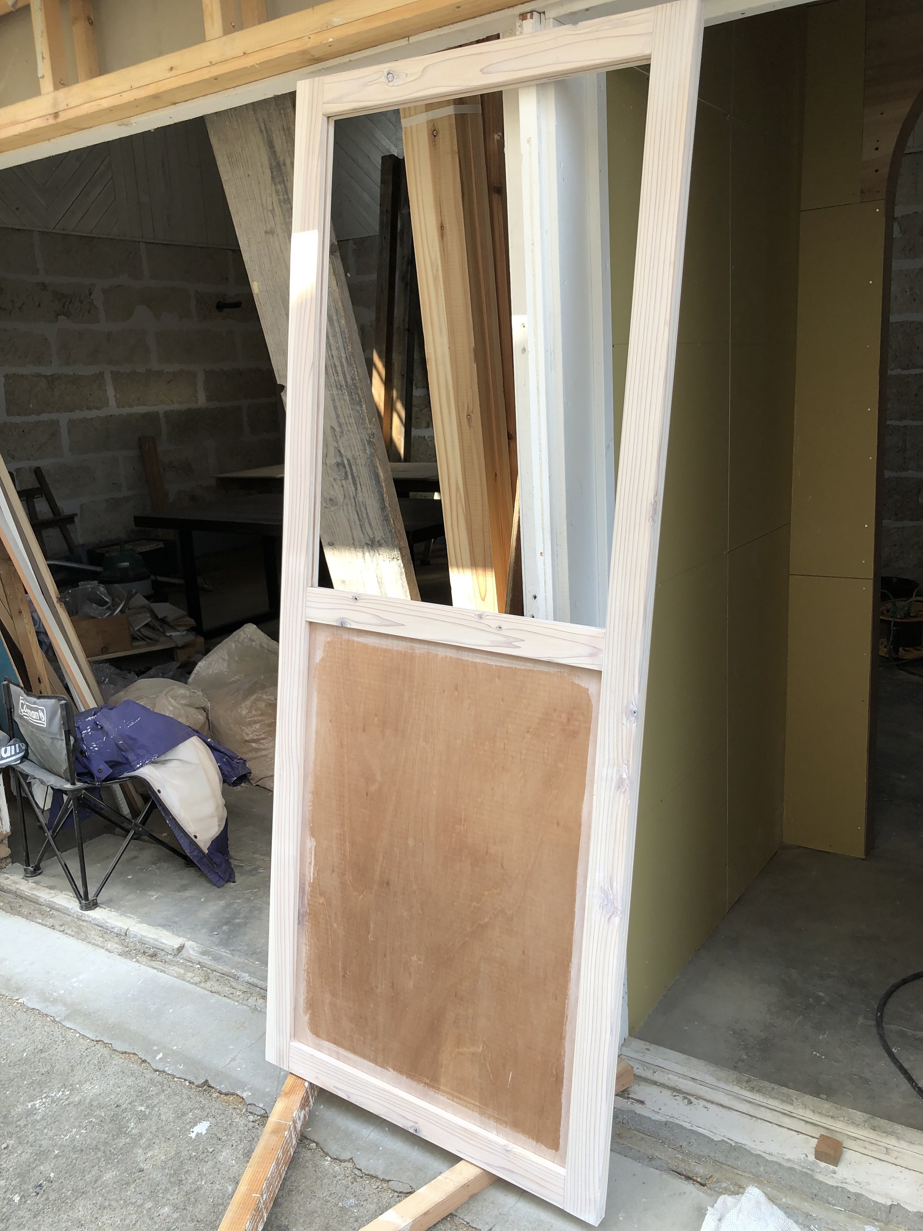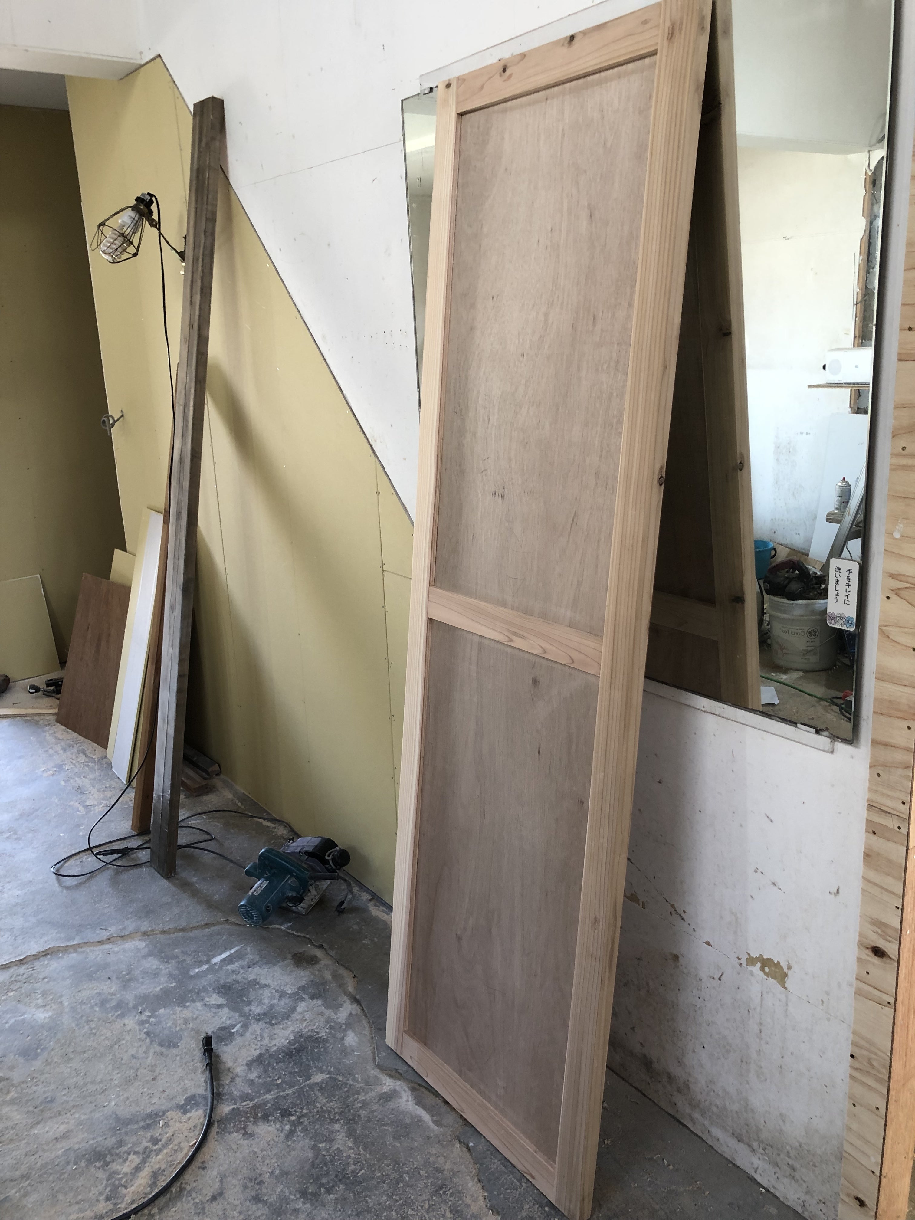 トイレのドアです。 大工さんにここまで作ってもらったので、その後を頑張りました。