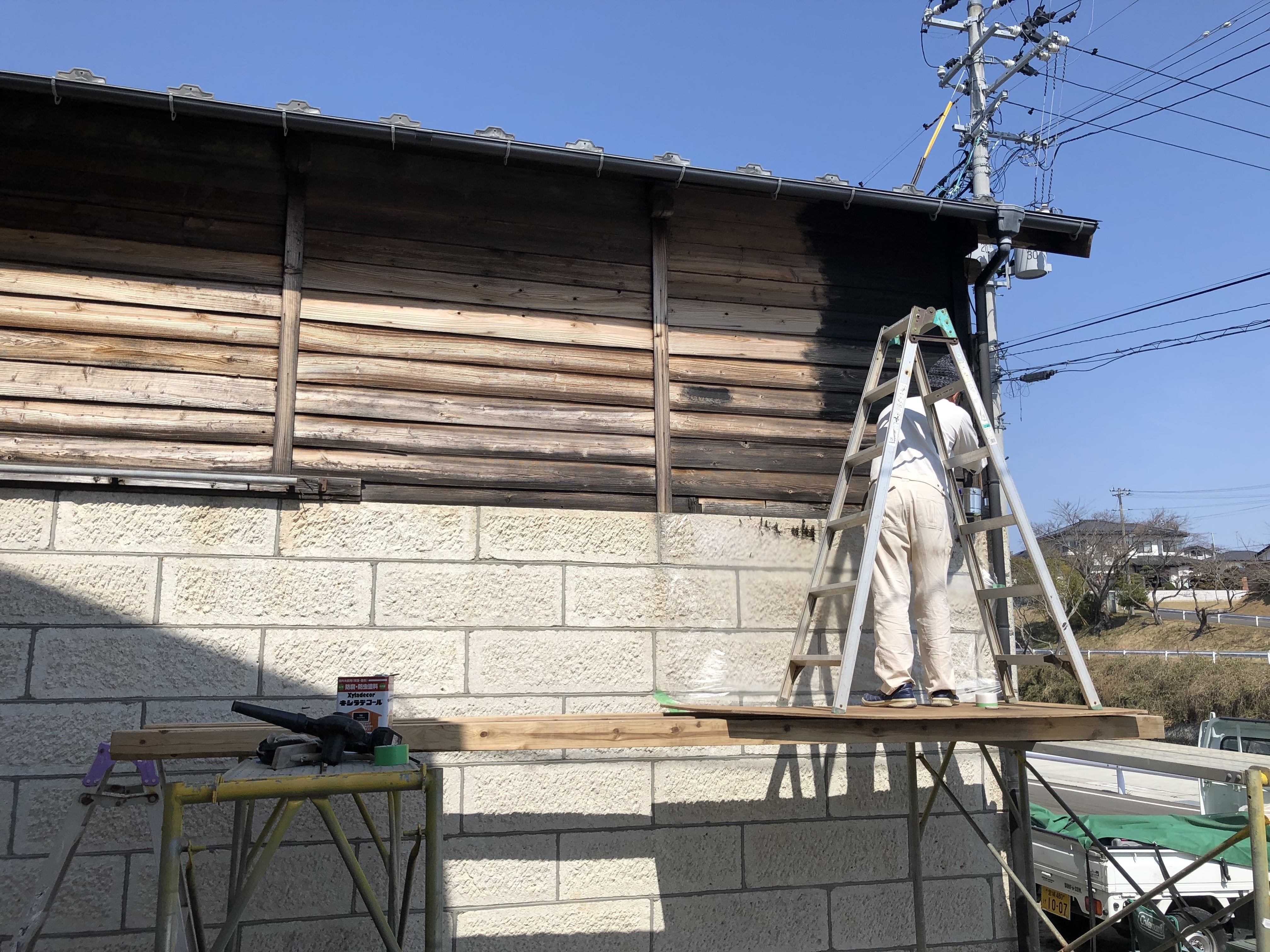 今日はお天気が良かったので、お外でオイルステインを塗って貰いました。
