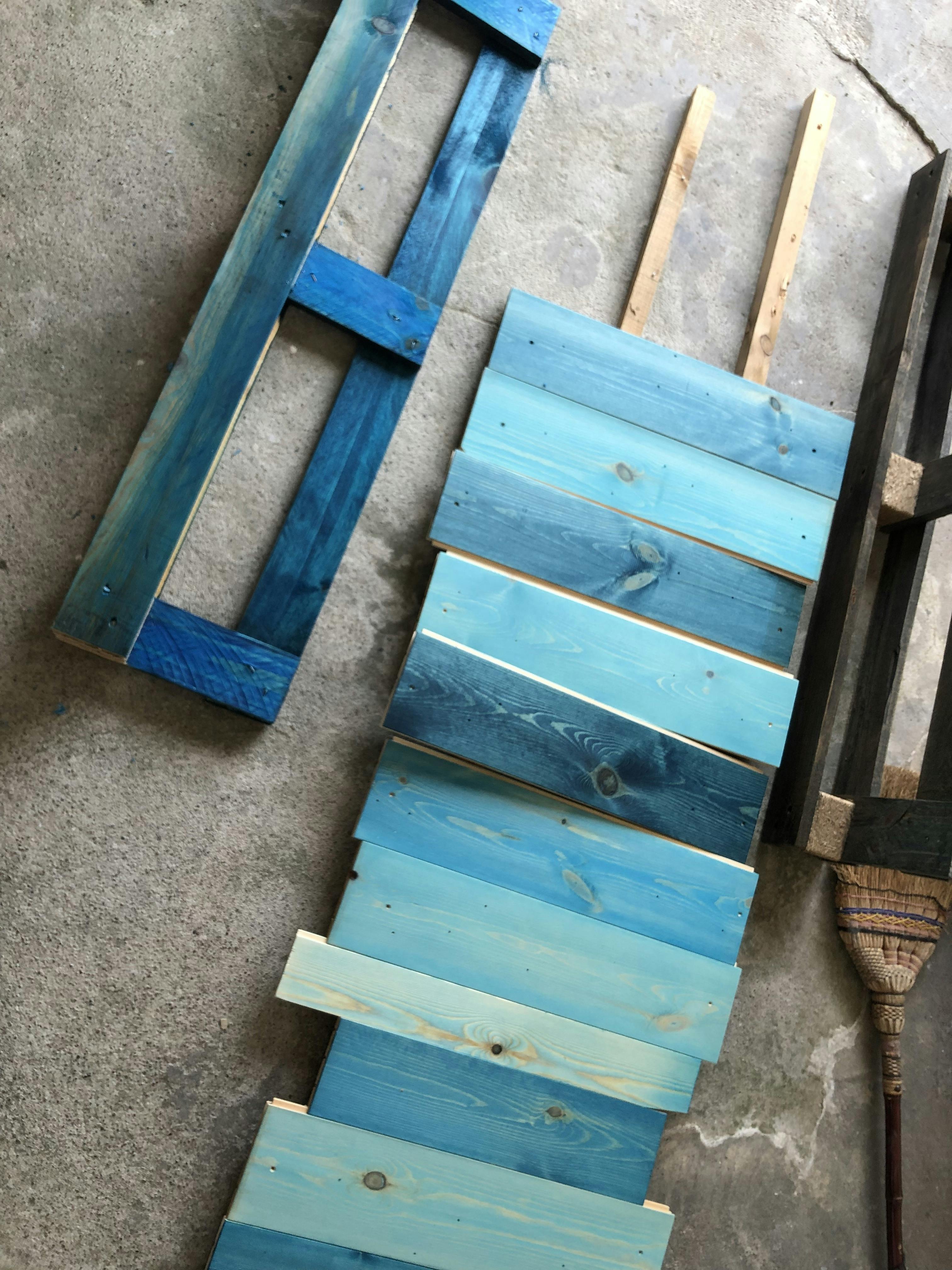 端材再利用で何かできなないかな? と、部材の切れ端に色を塗りました。 お店の内装は、「ヨーロッパの海辺」をイメージしてて、ブルーと白を基調にしたいなぁ。と思っています。こんな風並べてみたらどうかなぁ〜 とか、想像しながら造作するのも楽しいです!いいアイディアがあれば、是非コメントくださいね! 引き続きご支援の程、よろしくお願い致します☆