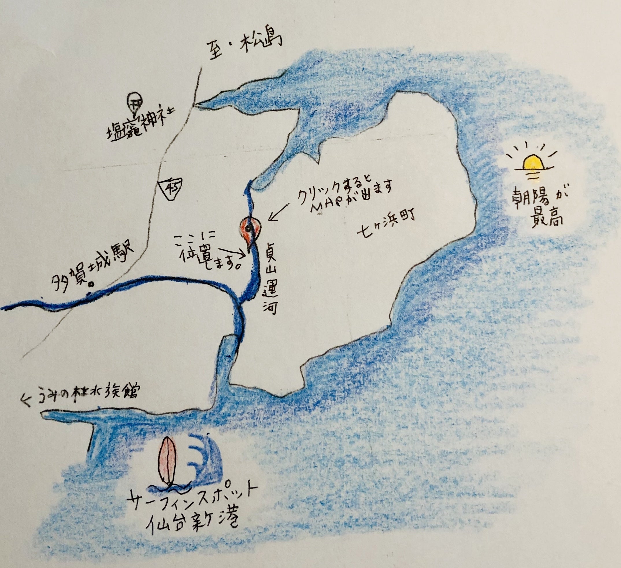 立地も貞山運河が目の前に流れ、海からも近く、潮の匂いもします。多賀城駅からは少し離れた場所ですが、それが故に時間がゆったりと流れ、日常の喧騒から離れるにはちょうど良い距離と空間があります。