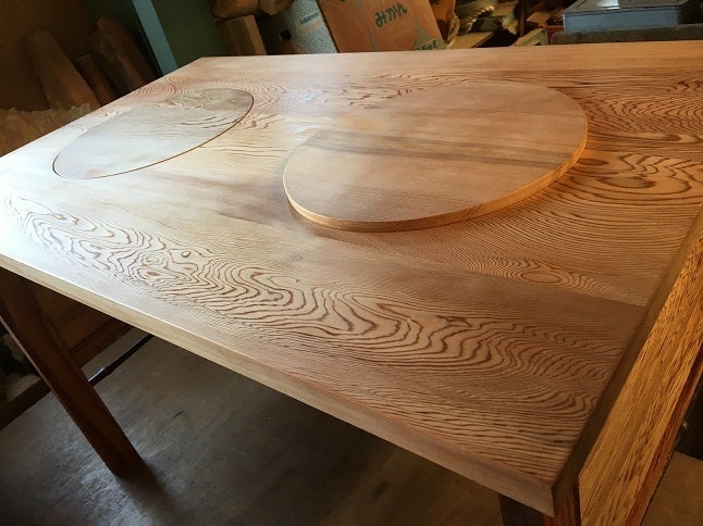 椅子の部材が四角なものが多い現状ですがこれからは丸い形状のモノも出来るようになります。 下の様な杉のウズクリ仕上げのトレーもマルイ形が作る事が出来ますし、まな板もマルイ形状が制作できます、 お陰様で、あと一息の処です、日にちが少なくなりました御支援宜しくお願い致します。