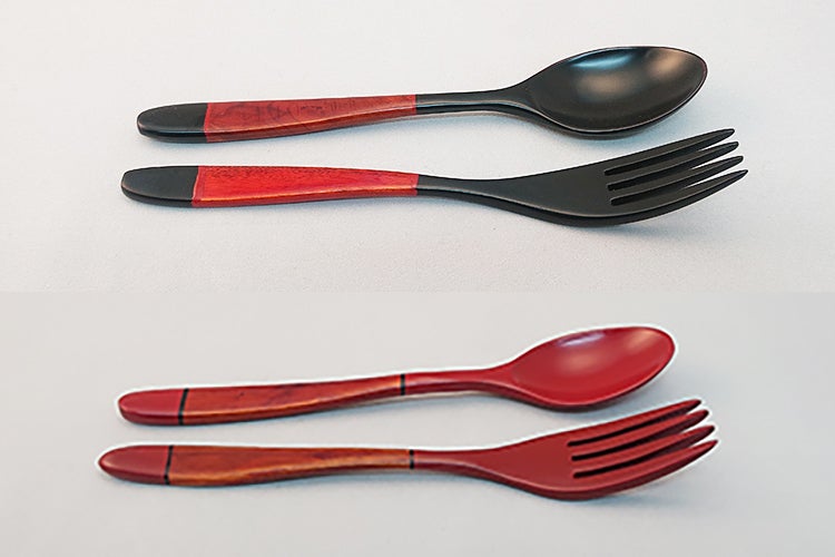 ・内容:漆塗りスピーン、フォーク各1本ずつ・配色:黒、朱