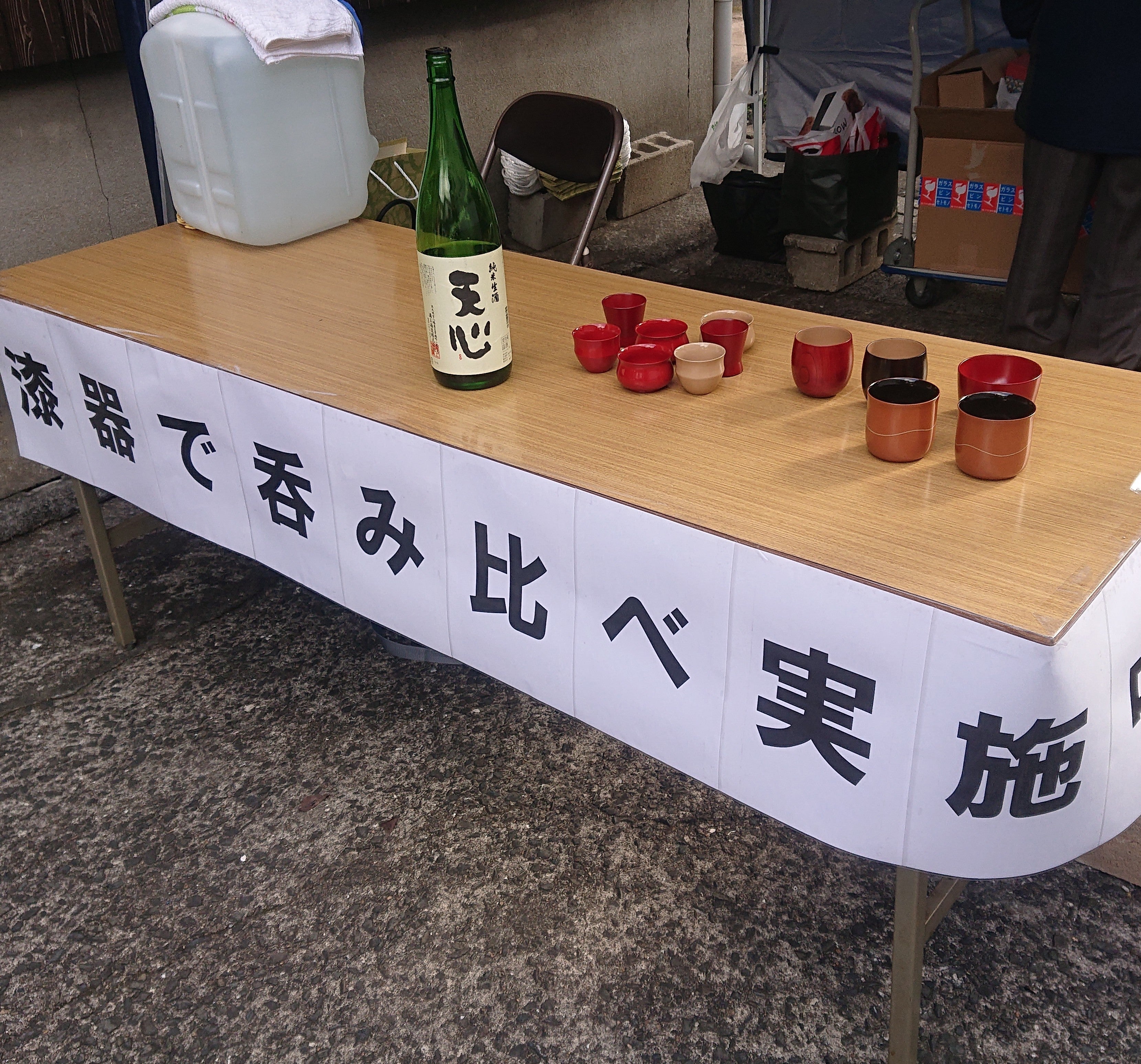2019/03/18 10:24先週末3/16、17にて福岡県八幡東区にあります溝上酒造(株)様の蔵開きに出店参加させて頂きました。出店内容は、磁器のぐい呑みと漆器のぐい呑みとで同じお酒を呑み分けて、器の違いでお酒の飲み口がどの様に変化するかの体験コーナーを開かせて頂き、同時に販売ブースも併設させて頂きました。若い方から年配の方まで幅広い大勢の方々に体験して頂き楽しんで頂き、多くの方に漆器の良さを再認識して頂くことが出来ました。熱狂的なリピーターも出現し同日に5回以上体験された方もおられました!若い方(20~30代)は漆器に触れたことのない方が多く、実際に手に取り試飲で使用することにより漆器の良さを体感できたことを楽しまれる方が多かったです。純粋に興味を持って頂き飲み口の違いに驚きの声を上げる方、その体験を伝えて仲間内の方を連れてきてくれた方、その周りで反応を見て興味を持ち試飲して頂いた方、様々な入り口があっても漆器の良さを知ってもらえる活気に満ちたブースになりました。中には、「そんなに飲み口なんて変わらんだろ!俺は騙されんぞ~!」と試飲をしてもらった男性も「なんだこれ!!!全然ちゃうやん!!!」などコント的なやり取りで笑い声も多く生まれました。また、漆器を紹介する中で一番多かった質問が「お手入れ」でした。扱いが大変だと思われている方がやはり多く、しかし、実際のその場で流水だけでの「洗い」、粗品タオルでの「拭き」を行っている場面を見て頂き、本物の漆器は扱いがむしろ簡単だと、考えを再認識して頂ける良い機会にもなりました。併せて、「熱耐性の高さ」、「化学耐性の高さ」、「硬度の高さ」を認識して頂くことにより、普段使いでの使いやすさも認識して頂くことができました。漆器を理解し興味を持って頂いた方の中には早速家庭で使ってみたいと購入をされる方、同じ日本酒好きの方にぐい飲みをプレゼントしたいという方などうれしい限りでした。こうした実体験を伴うことにより漆器の良さをより身近に感じて頂けることで、漆器というものはまだまだ多くの人に興味を持っていただけると強く感じたイベントとなりました。引き続きこの様な機会を増やしていけるような働きがけを増やし、より多くの方々に漆器の良さを認識して頂きたいと思います。今回お世話になった酒蔵様情報溝上酒造株式会社住所:福岡県北九州市八幡東区景勝町1番10号TEL:093-652-0289 もっと見る