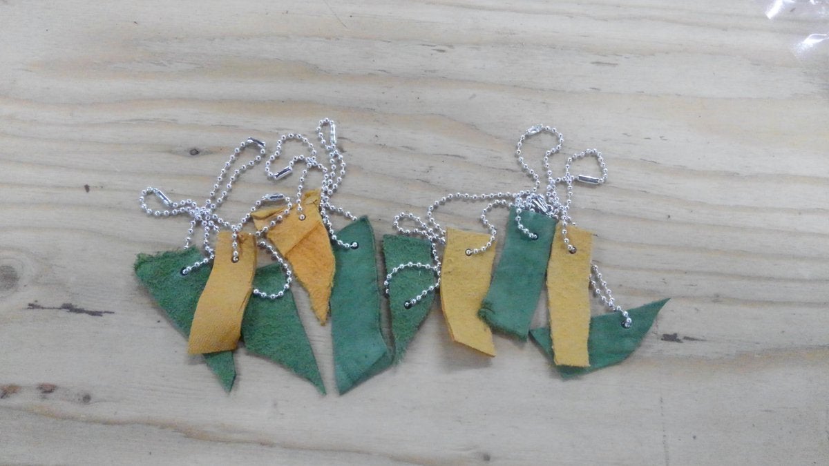 2019/02/22 13:36ストラップチェーンに鹿皮の切れ端鹿皮タグを作成した際、切れ端がたくさん出てきます。その切れ端を有効活用ということで、皆様にお配りするストラップチェーンに鹿皮のサンプルとしてお付けいたします。※形や色、大きさはバラバラなのでご了承ください。 もっと見る
