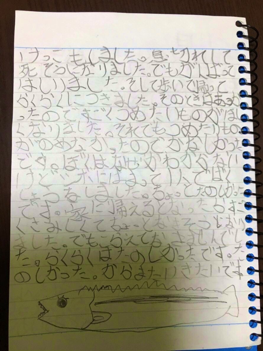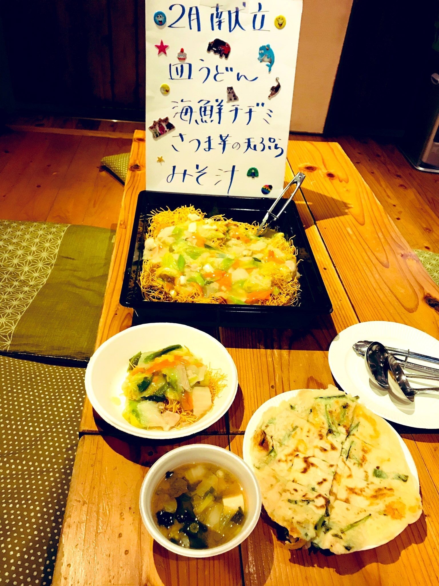 からあげ、ごはん、みそしる、サラダ、たまごやきおいしかったからまた食べたいです………一部抜粋……