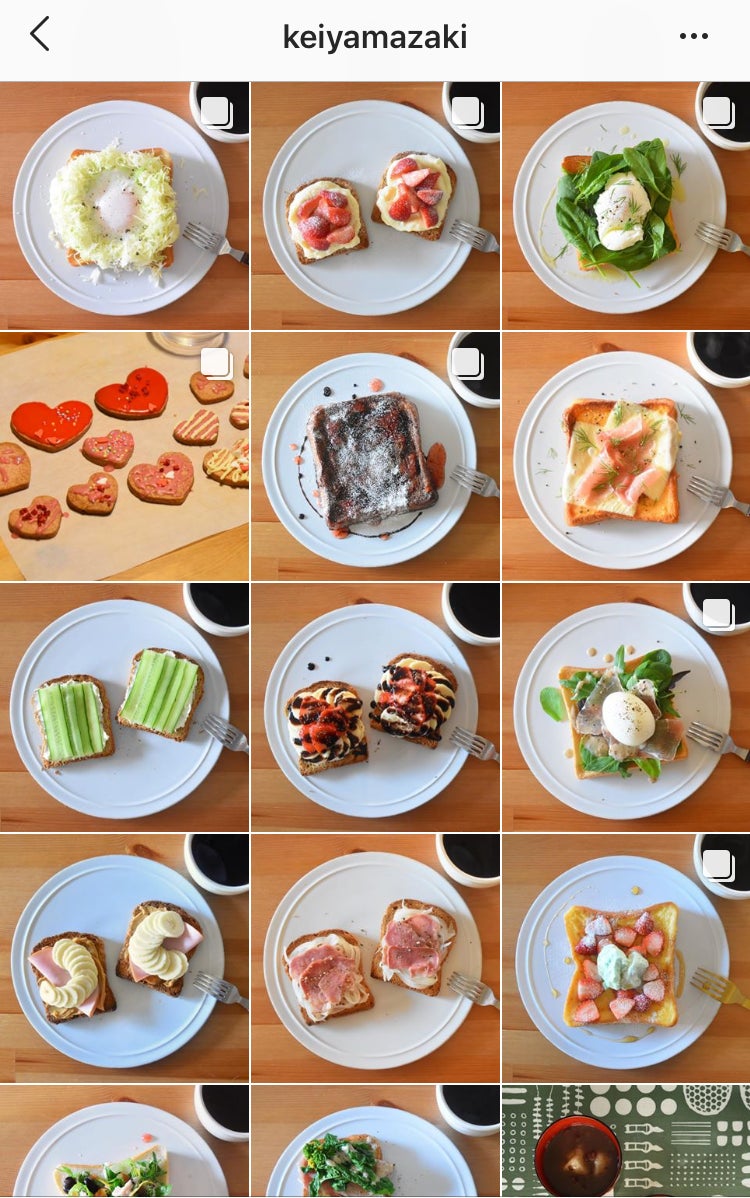例えば僕が飲食店のアカウントを運営するとしたら、先出のKEIYAMAZAKIさんみたいに、ワンテーマで真上から自店のメニューを撮影して投稿します。