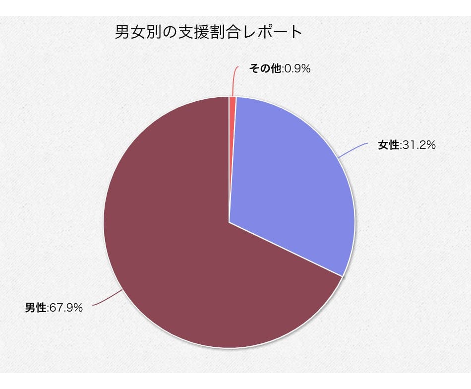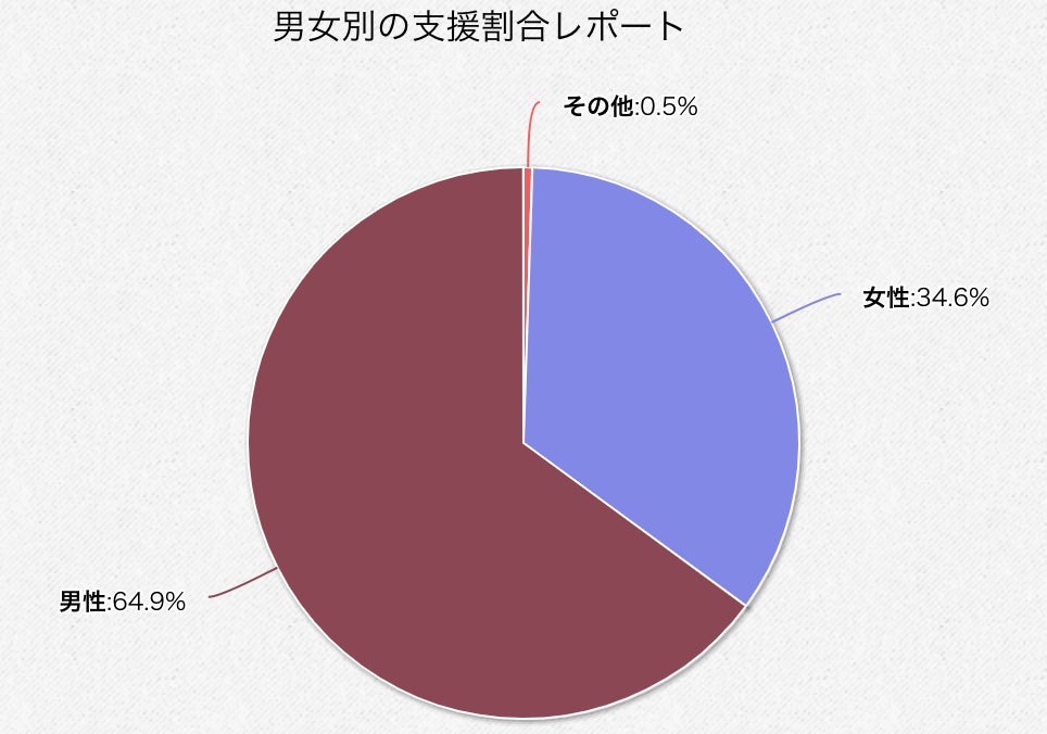 さて画像をみていただきたいのですが、こちらは現段階での支援者さまの「男女比」を表したグラフになっております。
