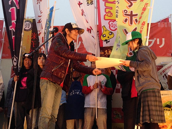 2014/11/10 18:44台風で延期となった「とっとりバーガーフェスタ」が11月8日・9日に開催され、あやべ温泉と綾部高校東分校のコラボチームで参戦してきました。 結果は… 残念ながら、10位以内の入賞ならず…(o´_`o) でも、特別賞として「地域PR賞」というのを頂きました。高校生メンバーのリーダーとして頑張った池田さんが、実行委員長より表彰状を受け取りました。 CAMPFIREでたくさんの方からご支援いただき、応援してもらっていたので、何とか10位以内の入賞は果たしたかったのですが、願いは叶わず… 応援していただいたみなさん、すみませんでした。m(_ _)m でも、チームメンバーは本当によく頑張ってくれました。雨が降り、震えるような寒さの中、大声でお客さんにPRし、一生懸命「みそポン!」を作りました。 どうか、頑張ったメンバーを褒めてやってください。 みなさんのご支援で生まれたポンちゃんは、会場でも大人気でした♪ 可愛い女の子たちの囲まれ、ポンちゃんはご満悦w よかった!ポンちゃんととっとりへ行けて… これから、敗因を分析、反省し、次につなげたいと思います。 みなさん、本当にありがとうございました。 もっと見る