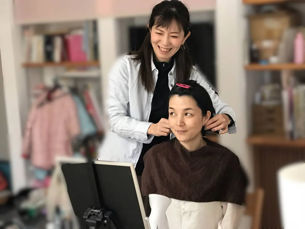 写真の説明:この写真は12月14日(金)に宇都宮の河川敷で撮影した日のへアメイク風景です。宇都宮まで出張ヘアメイクとして依頼をしました。とっても気さくで、楽しいヘアメイクさんの『おぐ』はとてもチャーミングで笑のツボも同じで、私たちはすぐに仲良くなりました♪ また、おぐと、一緒にお仕事でお願いしたいです。