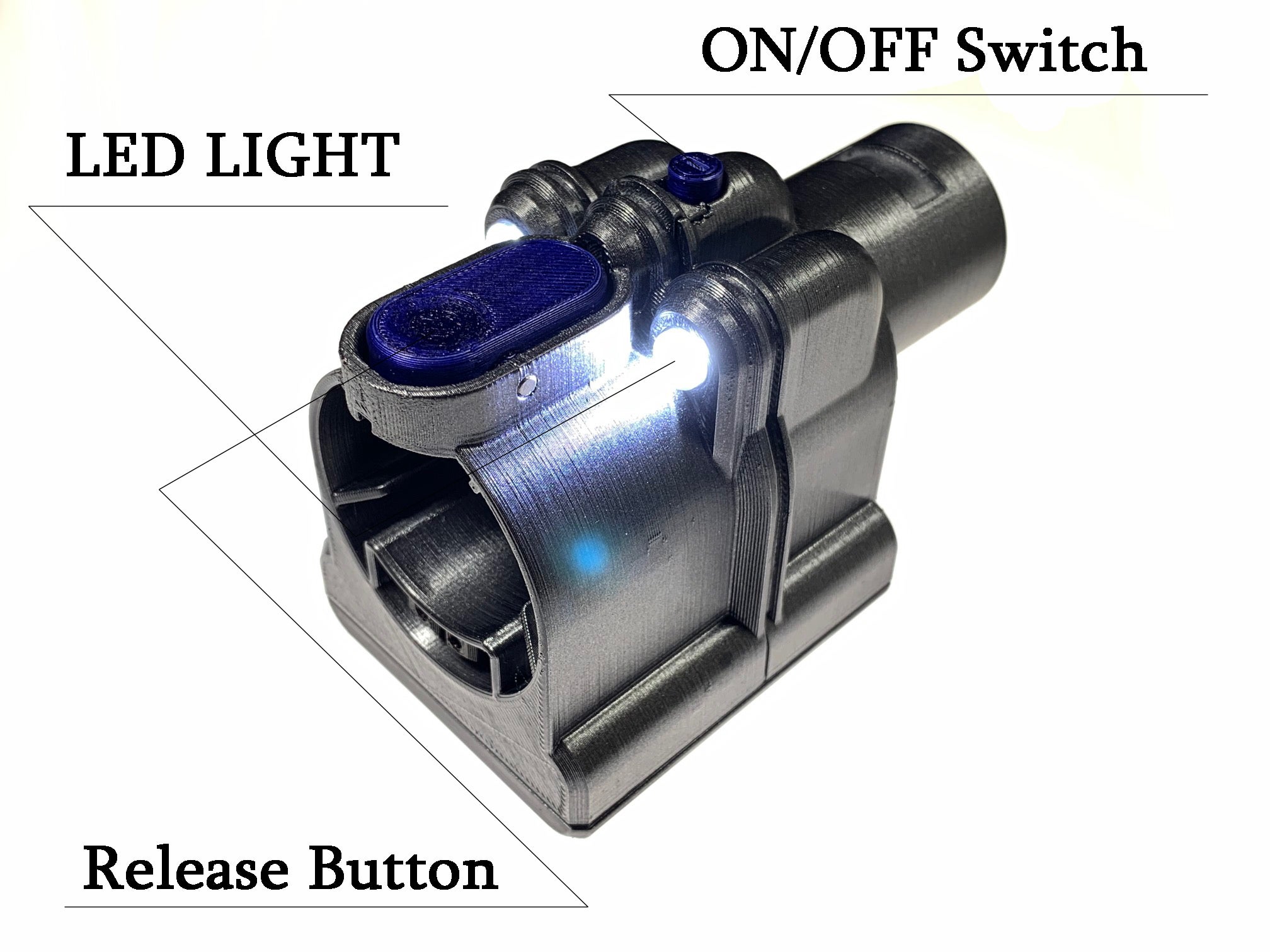 ・ON/OFFも切り替えられる為、LEDの明るさが不要な場合は無駄な電気を使用しなくてすみます。(スイッチがONの状態でトリガーを引き、掃除機が作動している間だけLEDが点灯致します。OFFの場合は掃除機が作動していてもLEDは点灯致しません。)