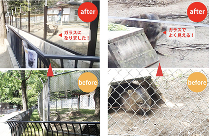 初めてクラウドファンディングでご協力を募ったときには、ウォンバット舎の柵を金網フェンスから強化ガラスに変更しました。これにより、ウォンバットの様子がかなり見やすくなっただけでなく、園内道路での人々の話し声がガラスで遮られることで、ウォンバットたちが怖がることなく、元気に走る姿が見られるようになりました。