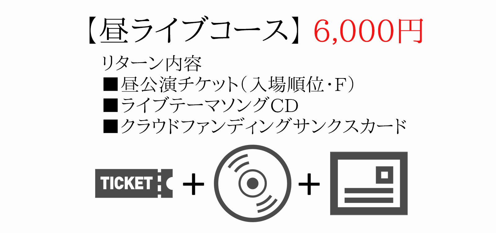「CDコース」はライブは行かないけどCDが欲しい!という方を対象としたコースになりますので、チケットはつきません。