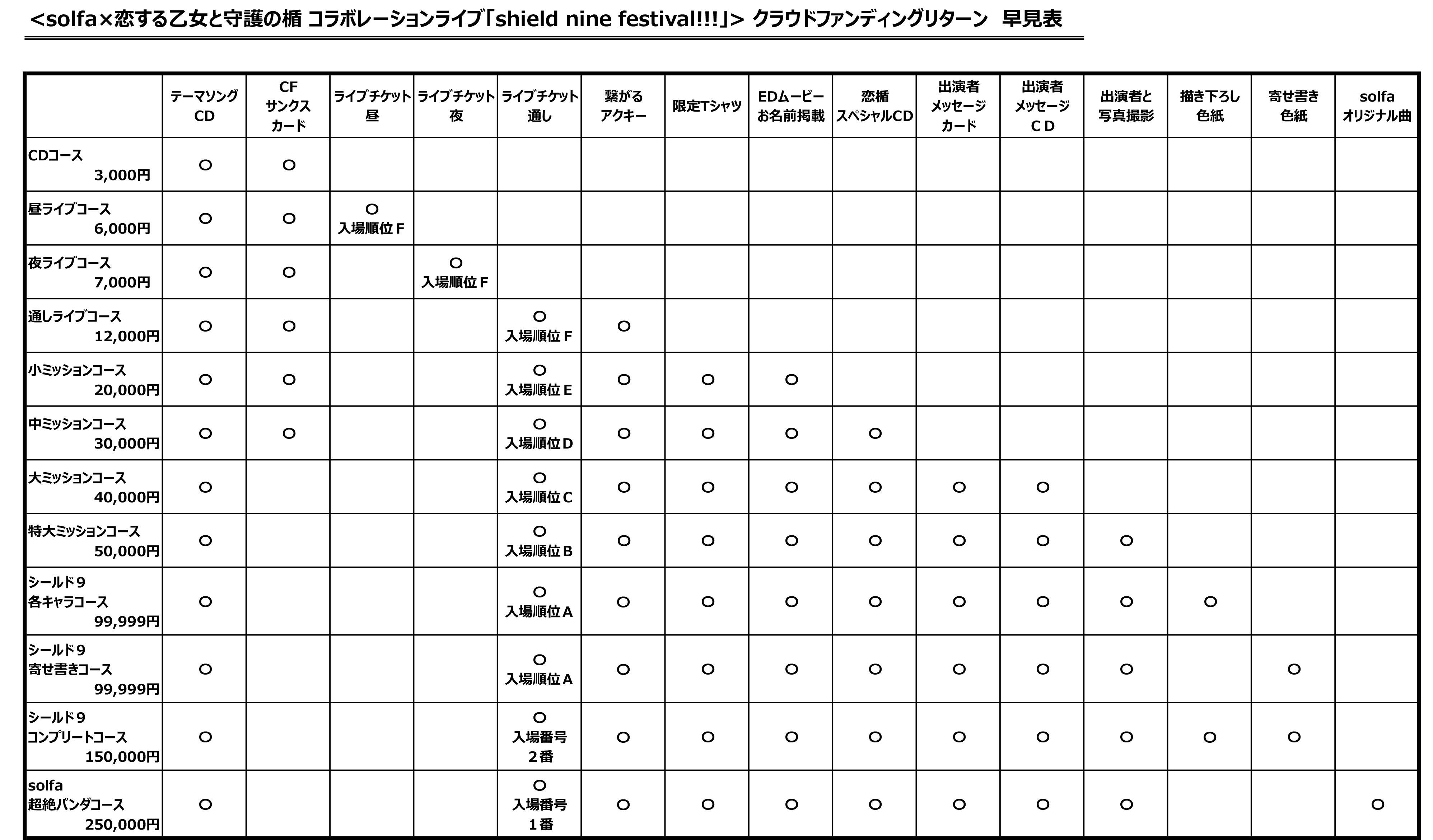 各コース内、ライブ入場の際の整理番号は支援順(ただし支援方法によって反映に誤差がある為整理番号は前後する可能性が御座います)になります。