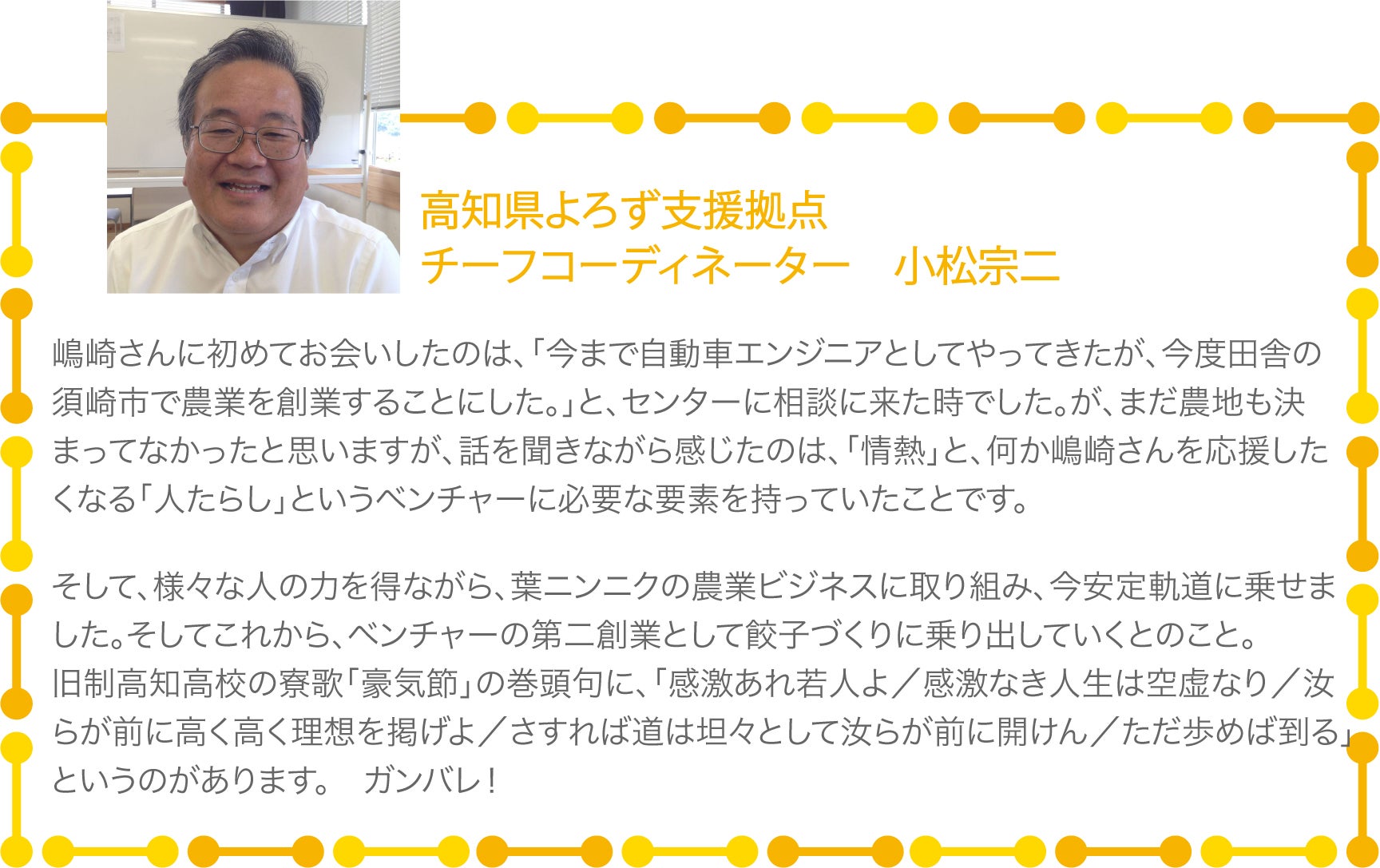 高知県須崎市産の有機葉にんにくを使った美味しい餃子を造るために、ぜひご支援いただければと思います。