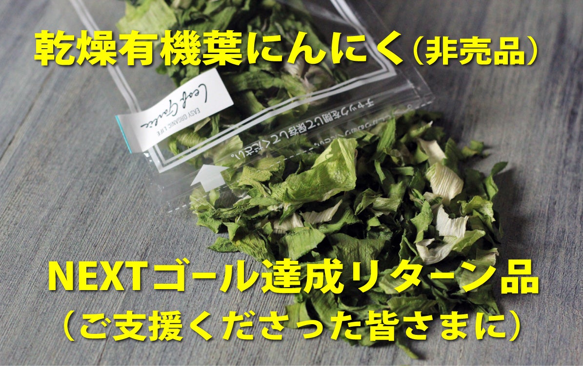 NEXTゴールの250万円を達成したあかつきには、ご支援くださった皆さまへ現在どこにも販売していない自社有機栽培の葉にんにくを使用した「乾燥葉にんにく」をリターン品に追加させていただきます!