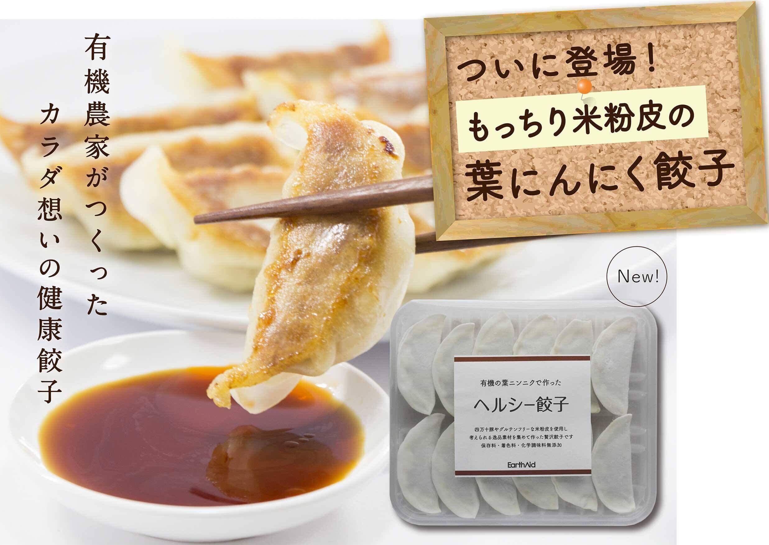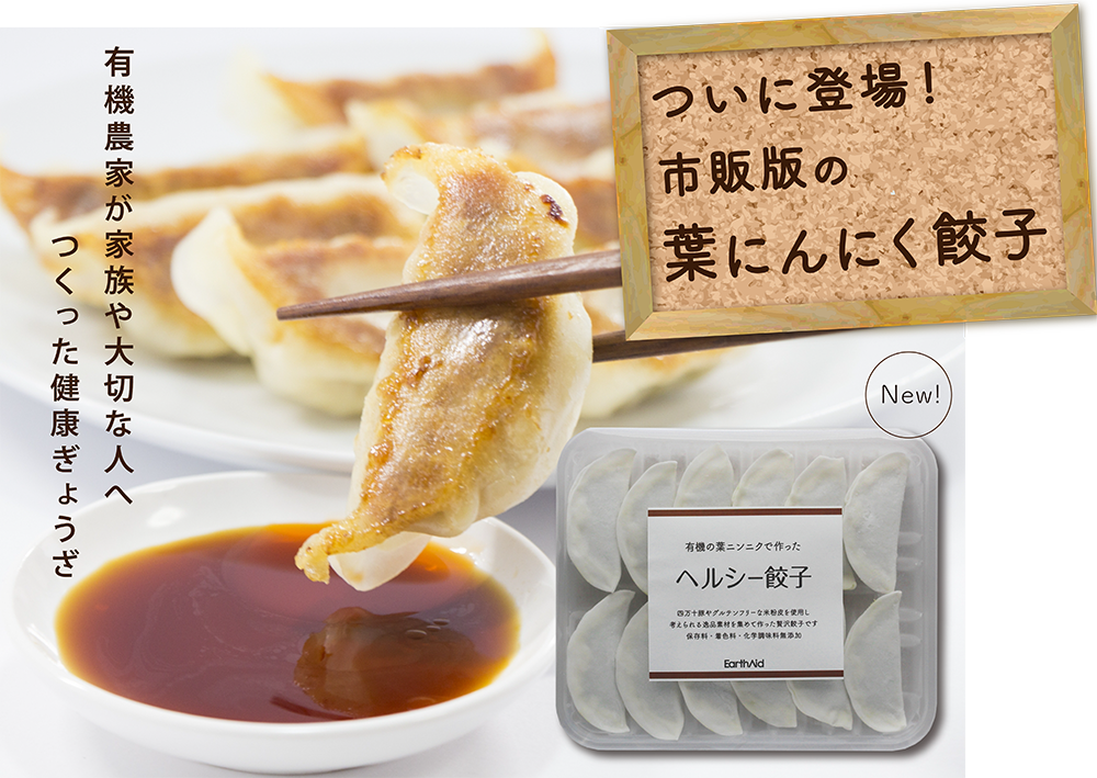 現在はホームページから購入いただくことが可能です。※アースエイドHP 葉ニンニク餃子販売ページ