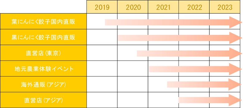 また日本で唯一無二の通年量産型"葉にんにく餃子"の味を手軽に知ってもらう為、弊社のショーケースとしてメディアや国内外の観光客も意識した直営店を東京にオープンする予定です。実店舗とネット通販の2本体制で、情報発信のメインは東京の実店舗に委ねて商品購入の受け皿はネット通販がメインとし、共に自社直販の形を採用します。それにより製造直販の中抜きで得られた利益や、お客様から直接頂戴した要望等をダイレクトに反映し、材料原価率を一層高めて高品質かつ、お得な商品へ成長させることが狙いです。