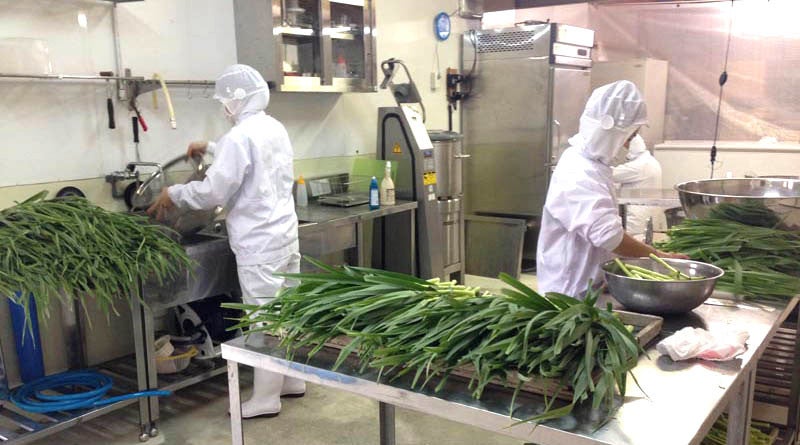 photo:葉にんにくの1.5次加工風景(当社加工場)