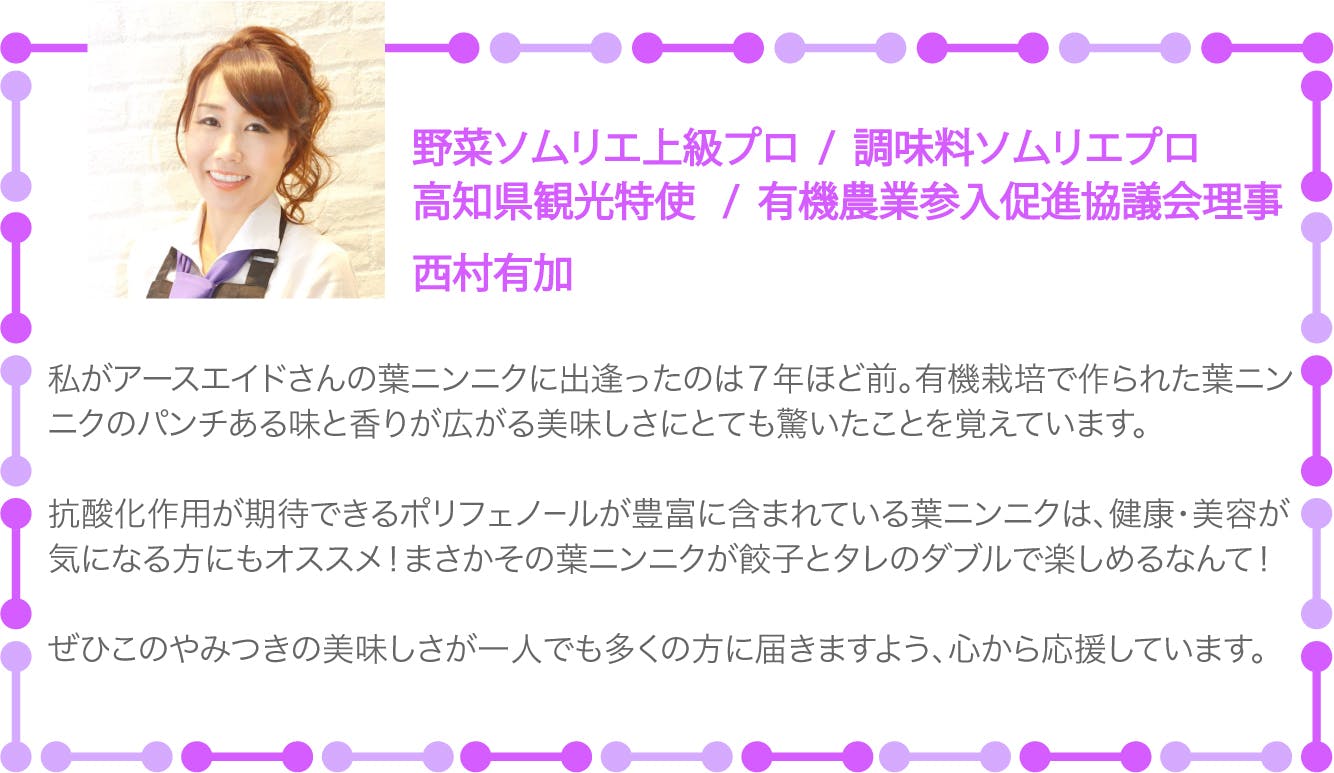 名人 久保木シェフからのプレゼントは何と、当社の有機葉にんにくを使った餃子でした。餃子も本場四川では基本”にんにく”ではなく”葉にんにく”を使うとのことで、葉にんにくで作る方が圧倒的に美味しいからだそうです。