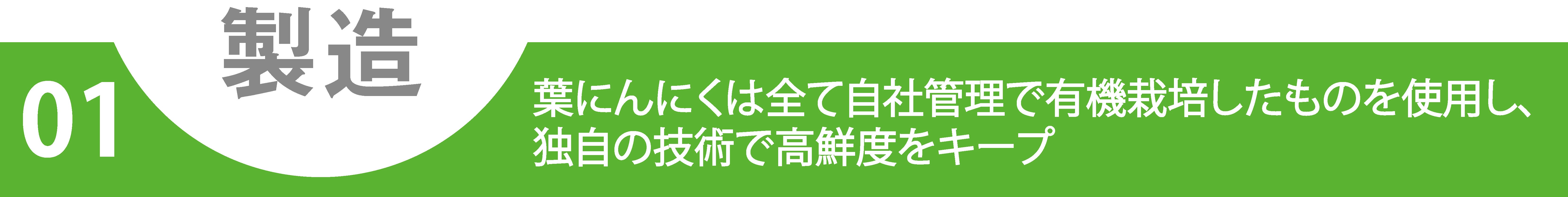目指すゴールはとにかく美味しい葉にんにく餃子を堪能してもらうことですから、当社の有機葉にんにくの味を損なわない、こだわりの厳選素材と当社自慢の高鮮度加工法で作ります。