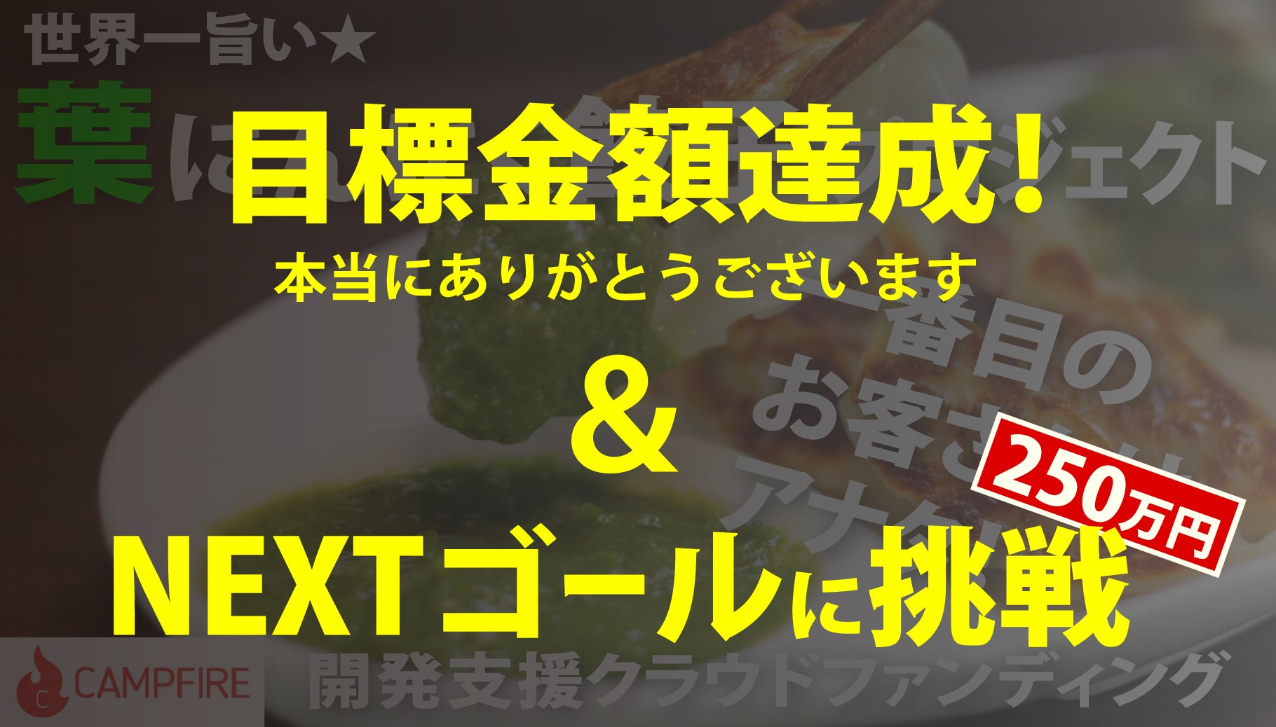 葉にんにく餃子プロジェクト、支援終了前にして目標金額を達成することができました!!