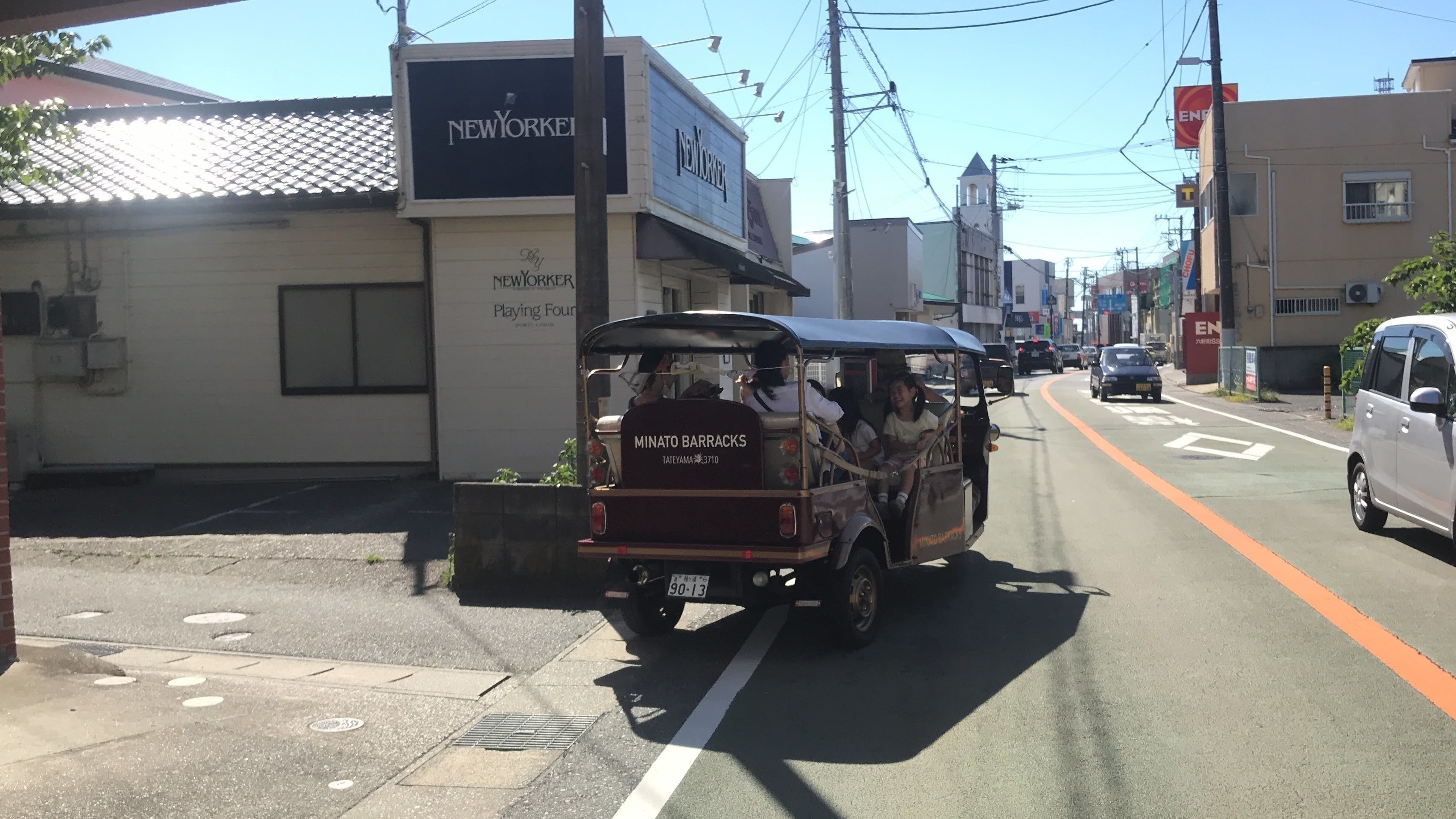 (イベント時)トゥクトゥクがtu.ne.を出発!六軒町のまちを流して館山駅まで送迎します