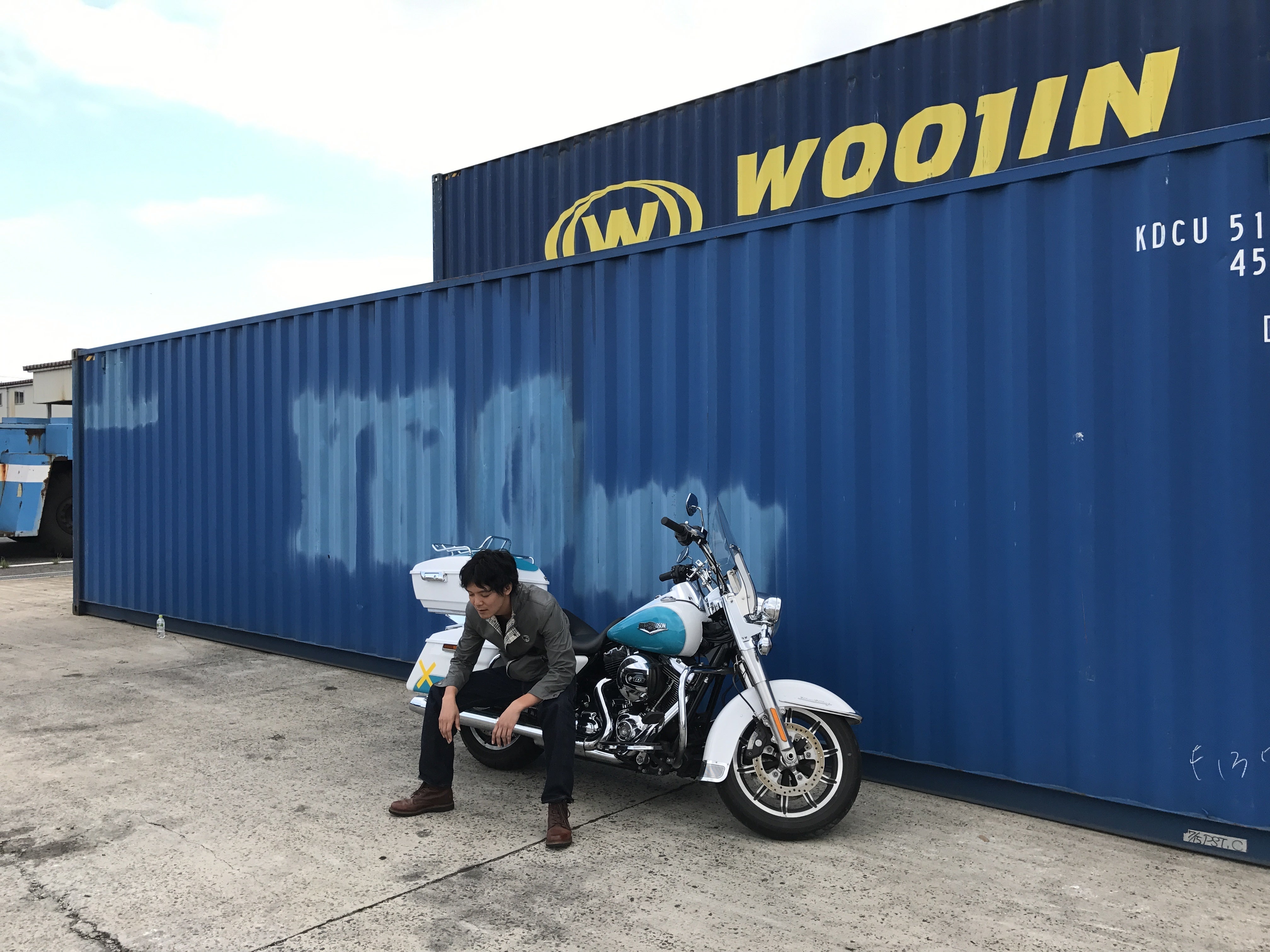 旅をする為に購入した大型ハーレーにギターを括り付け壮大な旅をスタートすべく、新潟県の境港から韓国にフェリーで渡った。