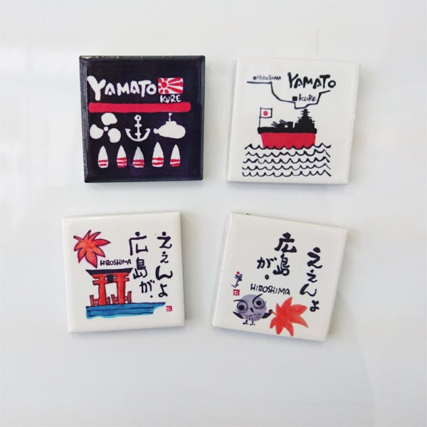 いいださんが描いた広島の絵柄のタイルマグネット4個セット。