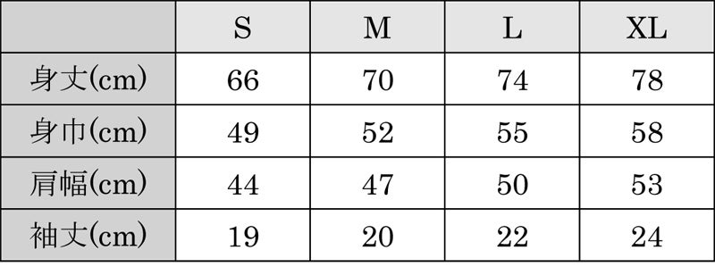 サイズはS・M・L・XLの4種類。実寸は以下のサイズ表をご参照ください。リターン選択時にご希望の品のデザイン・サイズを備考欄に記載していただきますようよろしくお願いいたします。