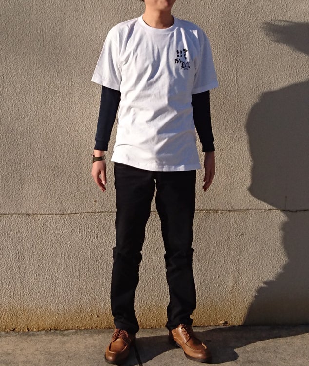 ※着用モデル:172cm男性,Lサイズ「まっいいか」の白