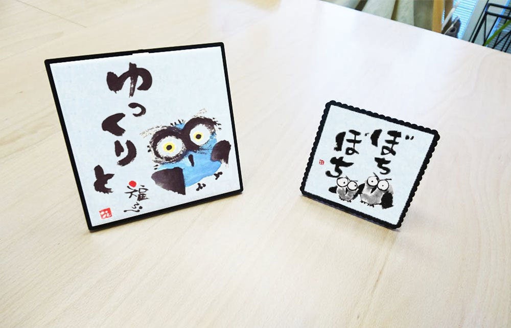 いいださんのふくろうは「福ろう」です。みなさんに福が届くようにと願いが込められています。もっと肩の力を抜いて良いんじゃない?という、いいださん自身のメッセージです。