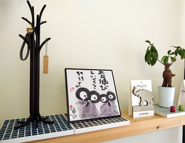 インテリアにはアートも大事な要素の一つです。その為に画家や書道家、額作家さんたちにご協力いただいております。本プロジェクトは、アーティスト いいだてつやさんのゆるーい世界観をぜひみなさんと共有したいと思い、実施にいたりました。