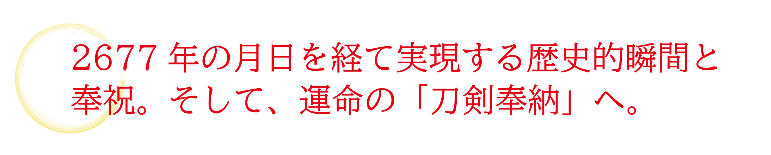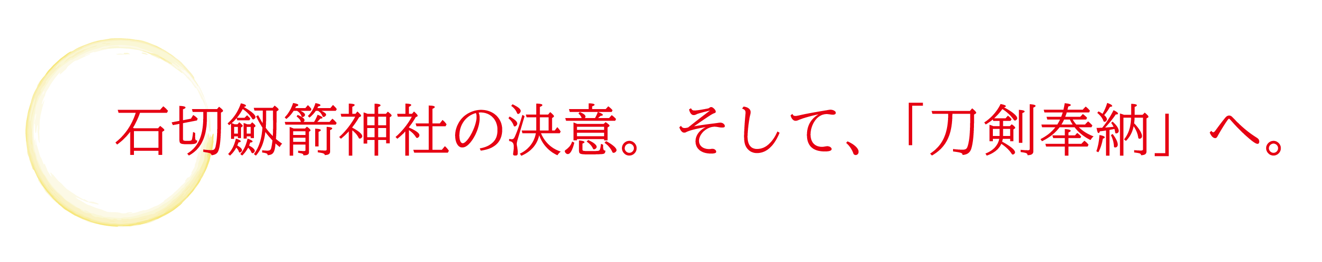 2677年の月日を経てなお石切劔箭神社では、本来奉納されているべき御祭神の佩刀(はいとう)が奉納されておりません。そこで、平成から新しい元号に変わる改元の奉祝として、さらに今回の改元は約200年前まで遡らなければ前例のないものである歴史的な唯一無二な節目であることから「刀剣奉納」を行うこととなりました。