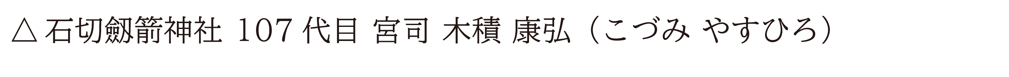 石切劔箭神社 107 代 宮司 木積 康弘