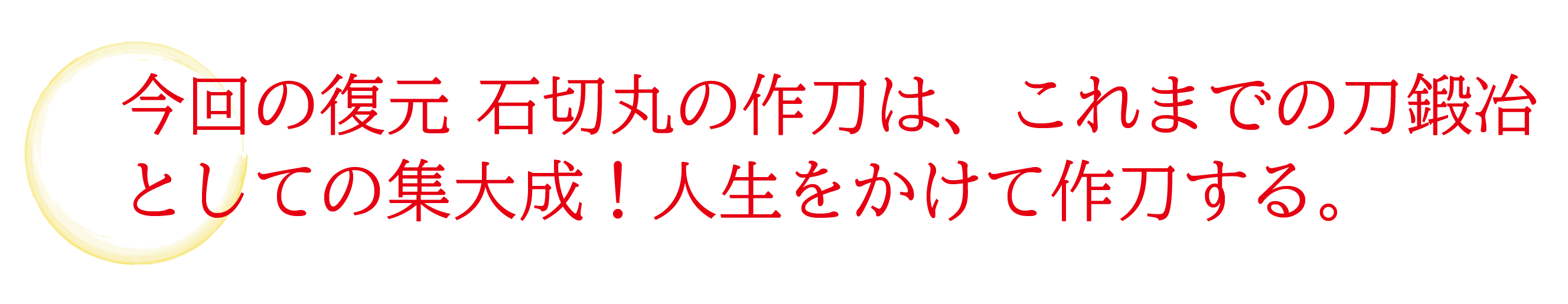 一振りの刀には研ぐことの出来る回数が決まっており、石切丸本歌も同様です。今回のプロジェクトは、石切丸本歌の一部を受け継ぎ、本来の姿で作刀された石切丸を奉納し、御祭神の佩刀(はいとう)とすることで石切丸を永遠に後世につないでいきたいと思っております。