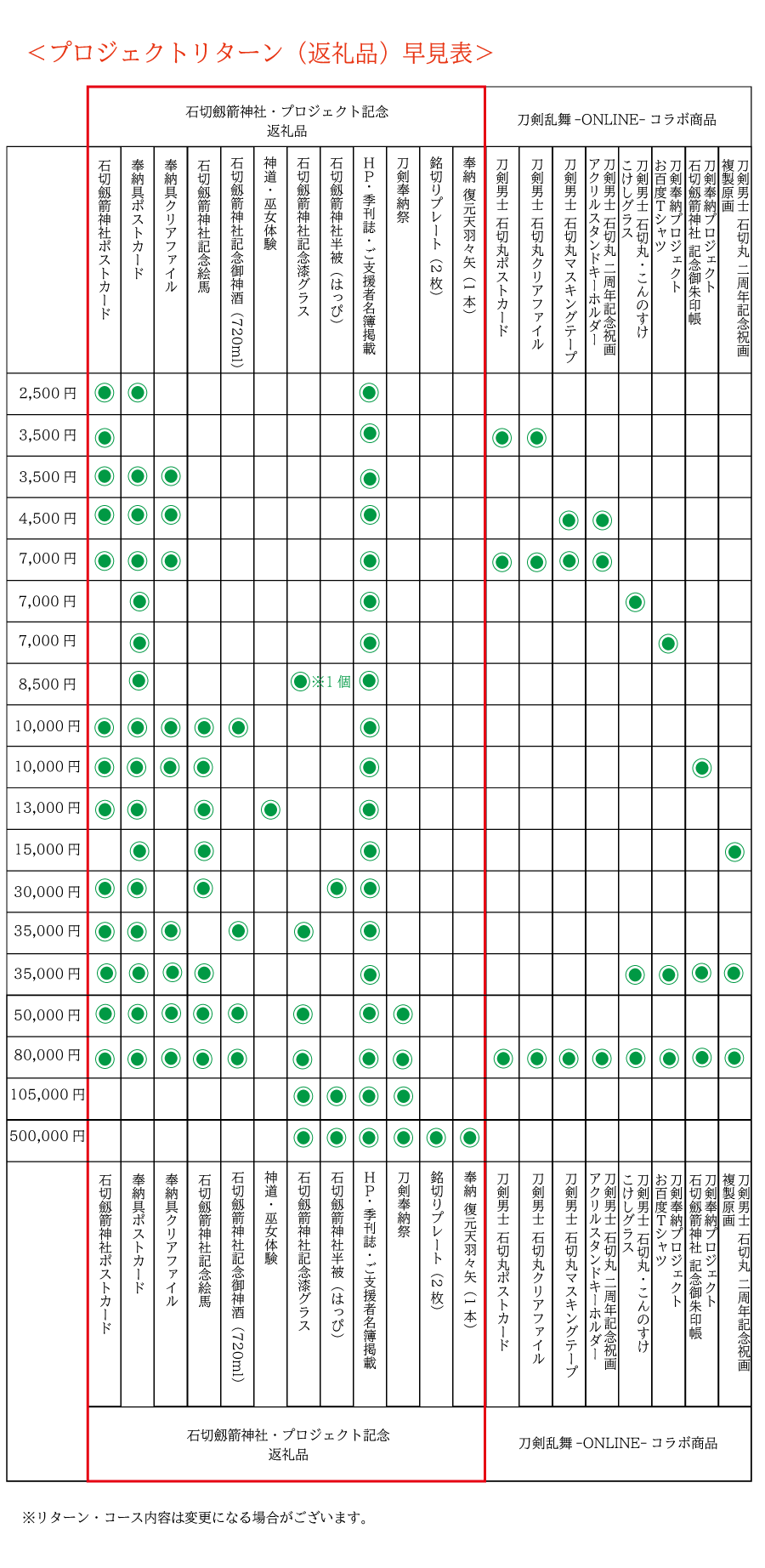 刀剣奉納プロジェクト返礼品は、職人・アーティストがチームとして集う株式会社studio仕組やプロダクトレーベル「Floyd(フロイド)」がプロデュースした「石切劔箭神社」「刀剣乱舞-ONLINE-」の特別返礼品などをご用意いたしました。