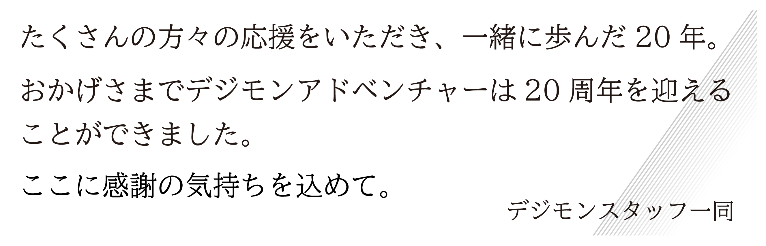 皆様の応援のおかげで「デジモン」シリーズは20周年!