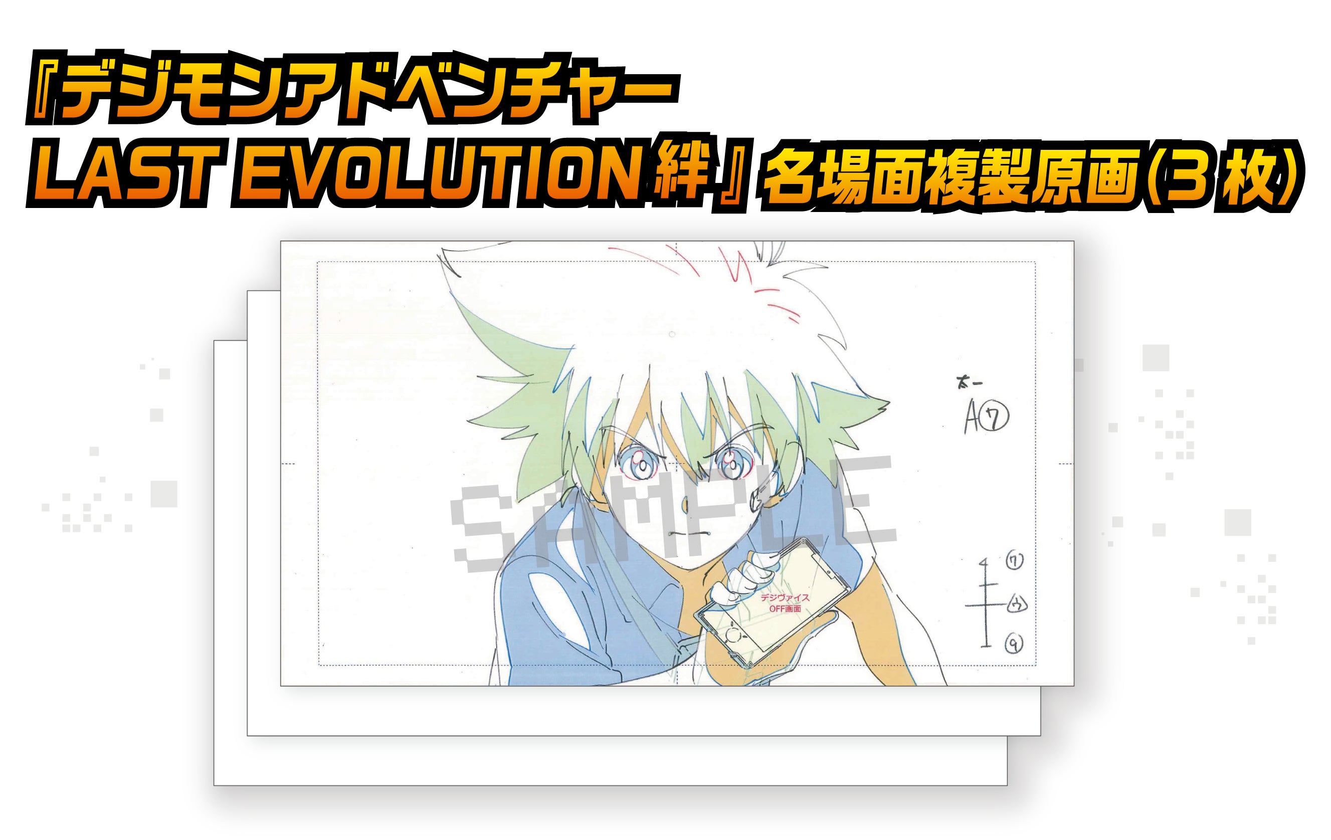 2020年2月21日に公開される「デジモンアドベンチャー LAST EVOLUTION絆」の名場面の複製原画となります。3枚それぞれ別の名場面となります。