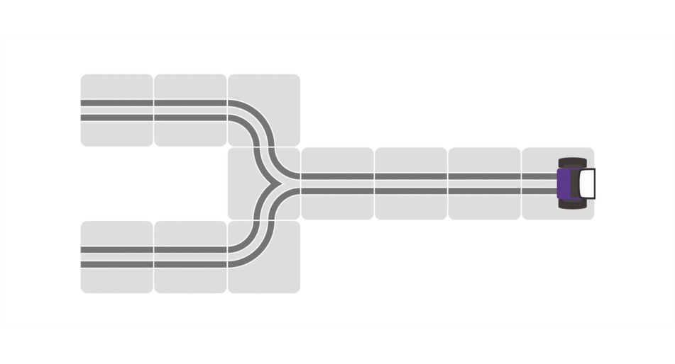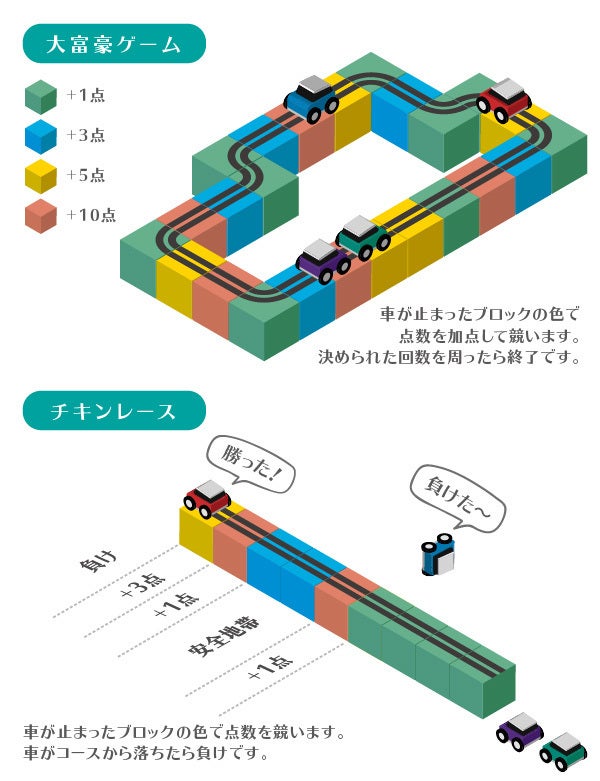 ▼車の勢いなどによりランダムに分岐します。予想のつかない動きがゲームの面白さにつながります。