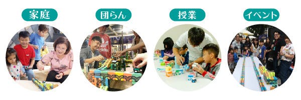 大人も一緒に遊べるため、家族や友達との対話を生み出すコミュニケーションツールにもなります。ご家庭やパーティーなどのイベント、授業など様々なシーンで楽しんで頂けます。