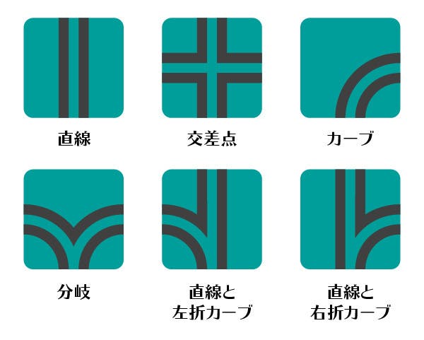 Qbi Toyは2種類の部品を使ってコースを組み立てることができます。「レールブロック」と「坂道パーツ」の2種類です。