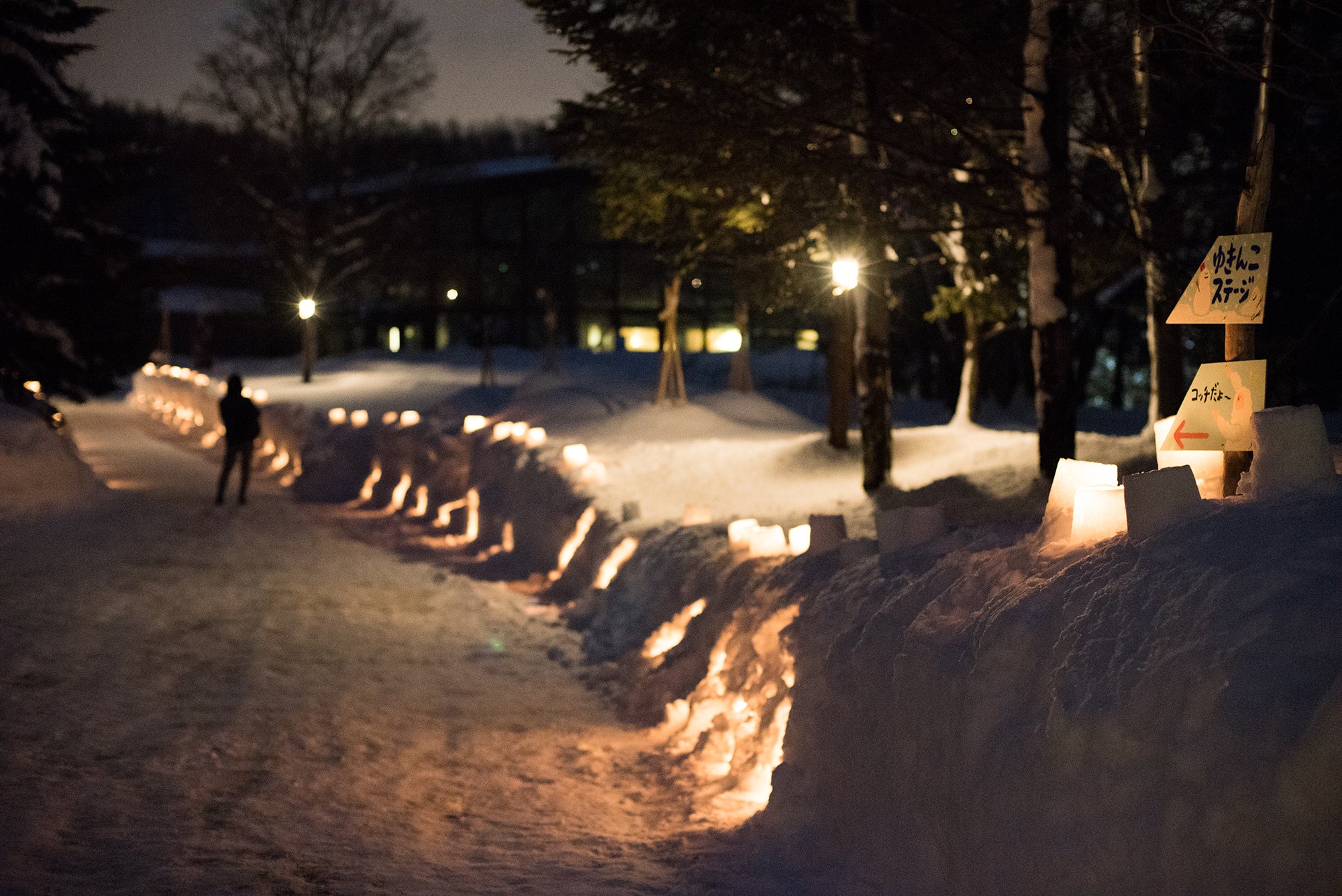 スノーキャンドルが夜を照らします。