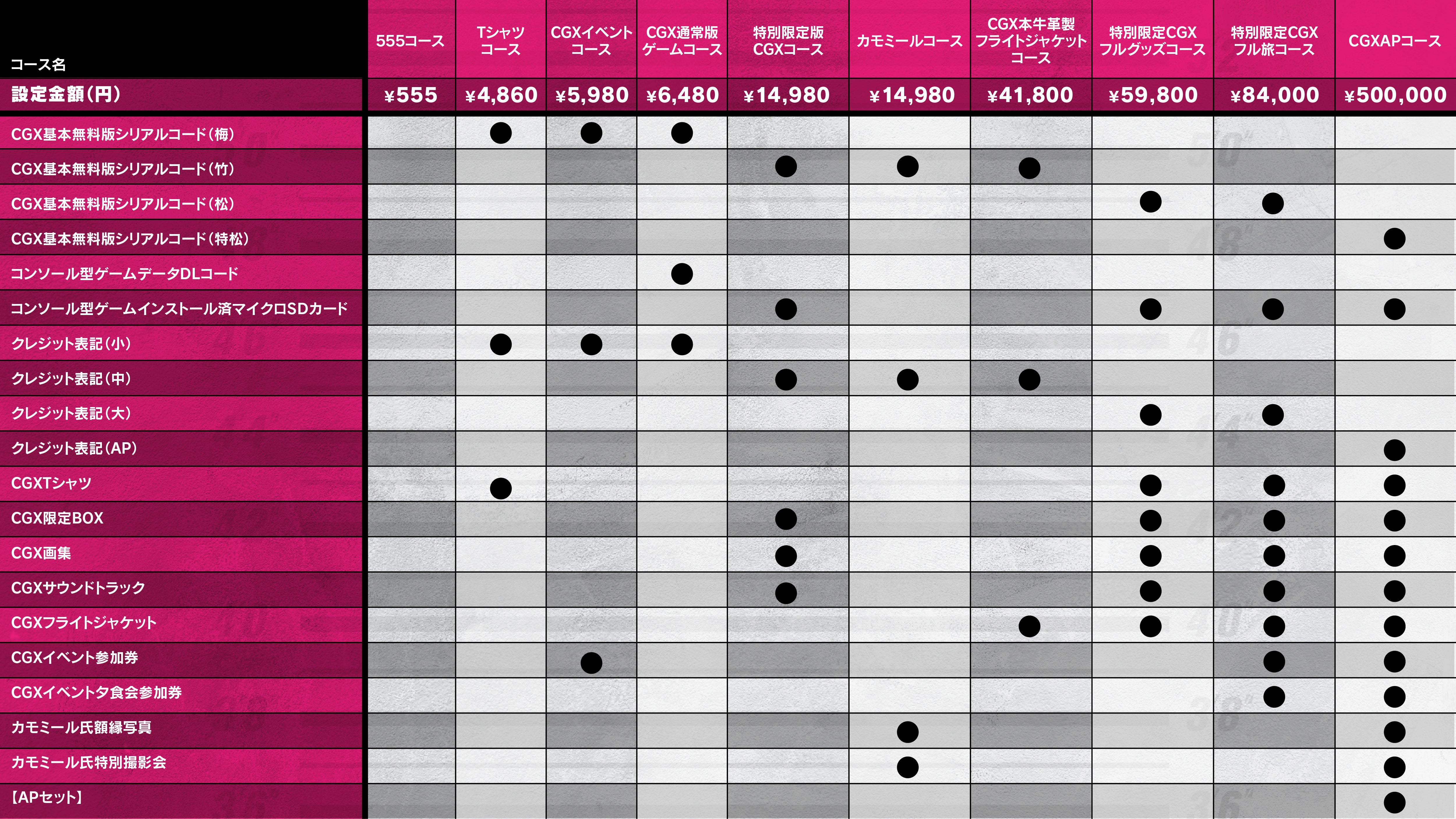 【返礼品】:CGX基本無料版シリアルコード付(特松)Android版又はPC版(どちらか選択)/CAMPFIRE限定CGX-BOX/コンソール型ゲームアプリがインストールされたマイクロSDカード(IOS版起動コード/Android版起動コード/PC版(Windows 10)起動コード付)/CAMPFIRE専用CGX画集/CAMPFIRE専用CGXサウンドトラック/CGX本牛革製フライトジャケット/CGX-Tシャツ/カモミール額縁写真(直筆サイン入り)/カモミール氏特別撮影会招待券(少人数対応)/支援者クレジット表記(AP)/生演奏付き夕食会IN佐渡/APセット※フライトジャケットはサイズS/M/L/XLがございます(ご希望のサイズが無い場合は特別追加価格で新規サイズを御作りします)。※TシャツはサイズS/M/L/XLがございます。※弊社手続き業務上可能な限り各種グッズに直筆サイン入り