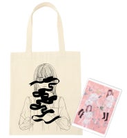 ( ※ DMに使用している作品の線画をシルクスリーンの版にして、染めたエコバッグに1点ずつ刷るので、多少のかすれなどはご了承ください。)
