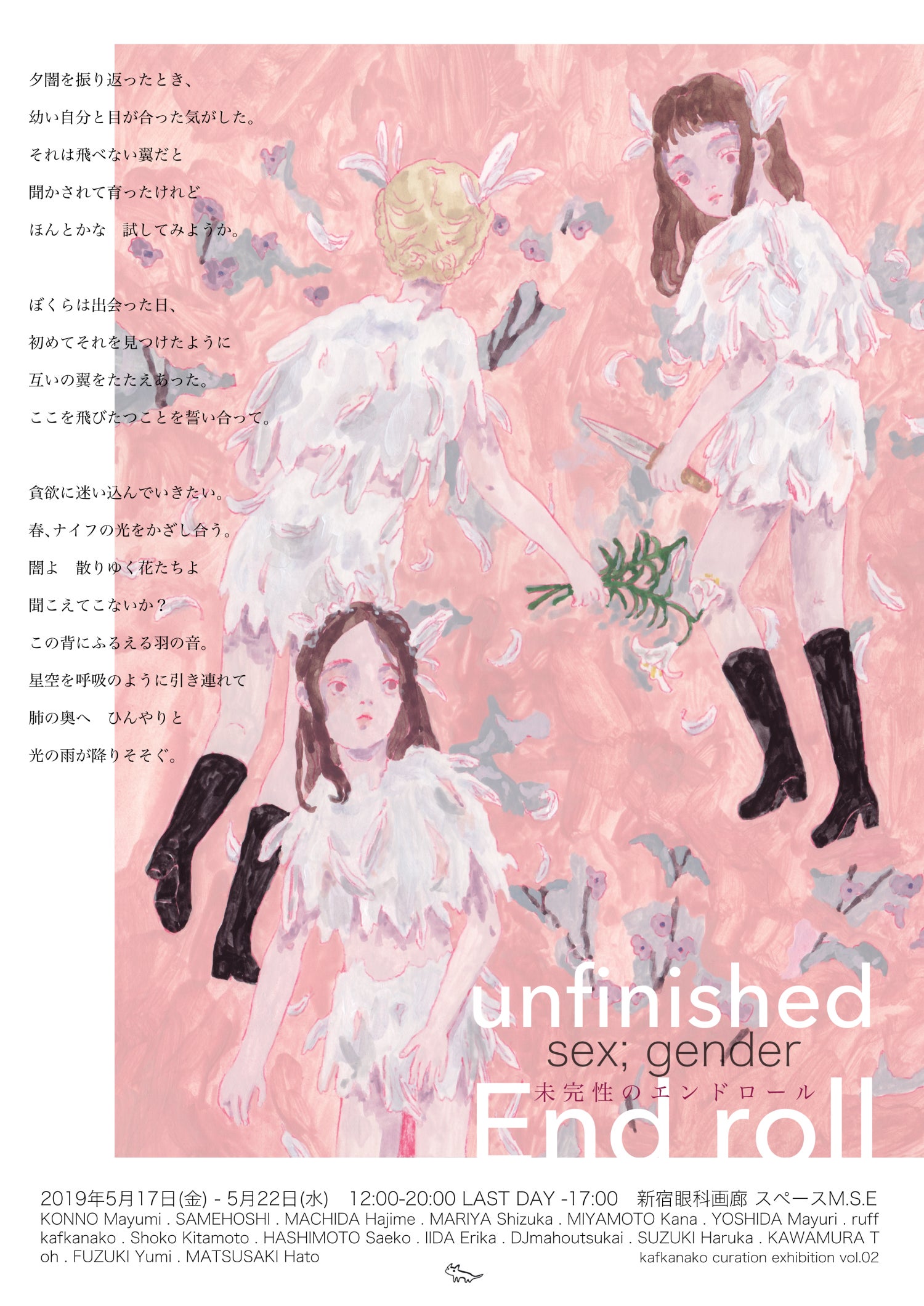 子供と大人の狭間で揺れ動く「少女」に焦点を当てて、各自の表現方法を活かして「未完」「性=生/聖」をテーマに制作した作品を展示します。